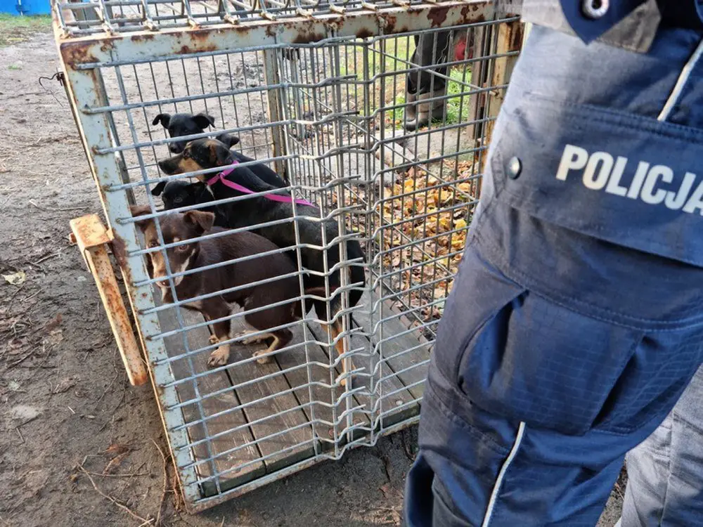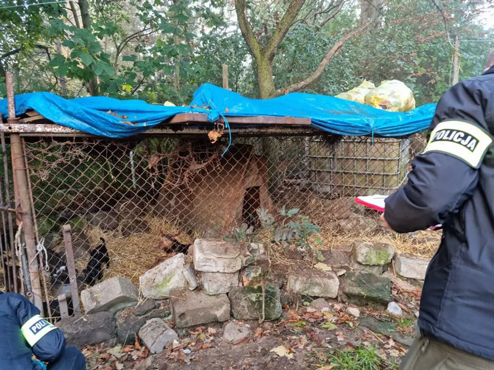 Policjanci zainteresowali się sytuacją zwierząt. Pojechali na miejsce i zastali teren upadłego gospodarstwa rolnego, na którego podwórzu znajdowało się około 20 kundelków w różnym wieku. Część psów biegała „luzem”, a część była zamknięta w pseudo kojcu oraz pomieszczeniach po byłych oborach lub chlewie.