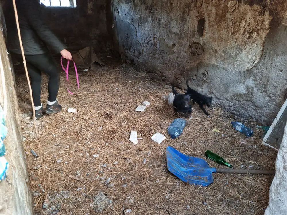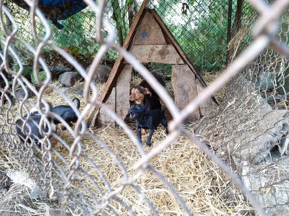 W zamkniętych pomieszczeniach znajdowało się jednocześnie zbyt dużo zwierząt, które nawzajem się atakowały. Na całym podwórzu panował bałagan, policjanci brodzili w psich odchodach. Psy ujadały nerwowo. Wśród nich była suczka z kilkoma szczeniaczkami trzęsąca się zimna, leżąca w jednym z pomieszczeń w brudnej od odchodów słomie.