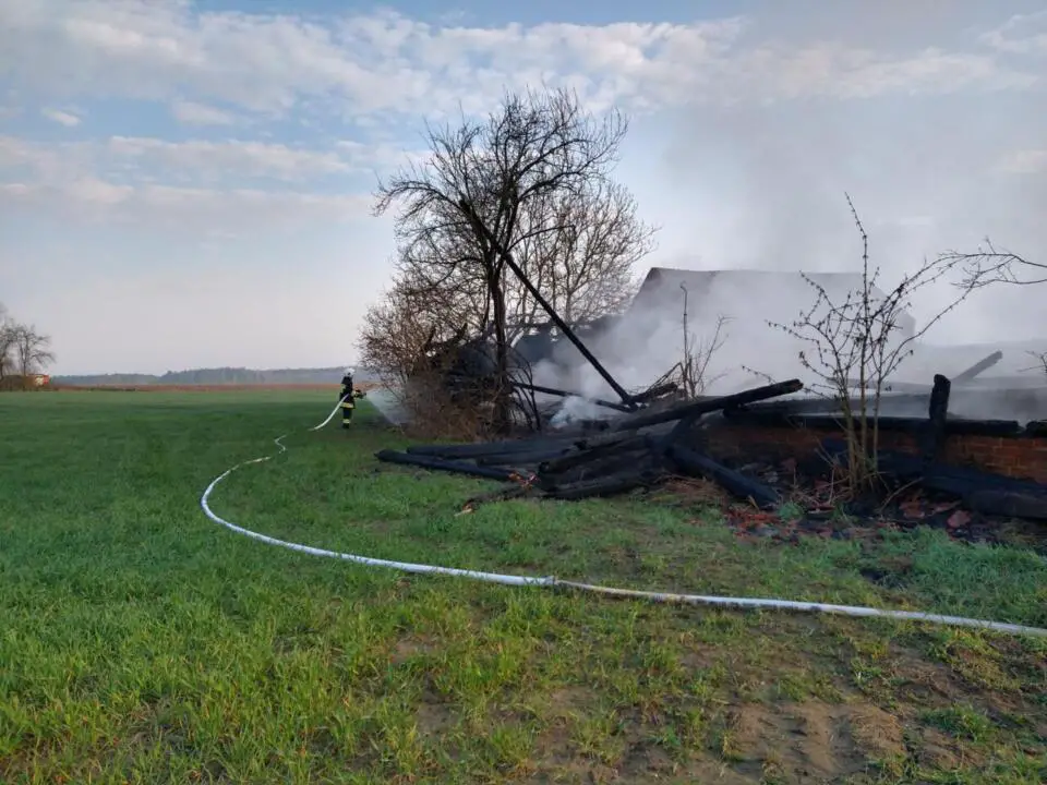 Po dotarciu pierwszych zastępów na miejsce zdarzenia potwierdzono treść zgłoszenia, pożarem objęta była cała stodoła. Właściciel poinformował służby, że w stodole nic nie było przechowywane. Strażacy przystąpili do gaszenia pożaru, a następnie przelano pogorzelisko wodą aby wykluczyć powstanie zarzewi ognia. W wyniku zdarzenia pożar strawił drewnianą stodołę i wiatę.
