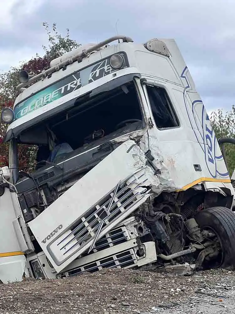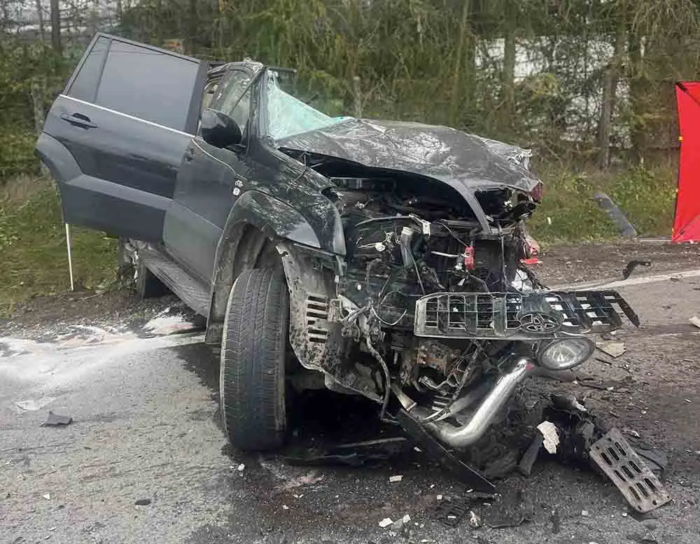 Do wypadku doszło w miejscowości Trzylatków. Samochód osobowy zderzył się z ciężarówką. Siła zderzenia była ogromna. Osobówka została rozerwana i rozpadła się na kawałki.