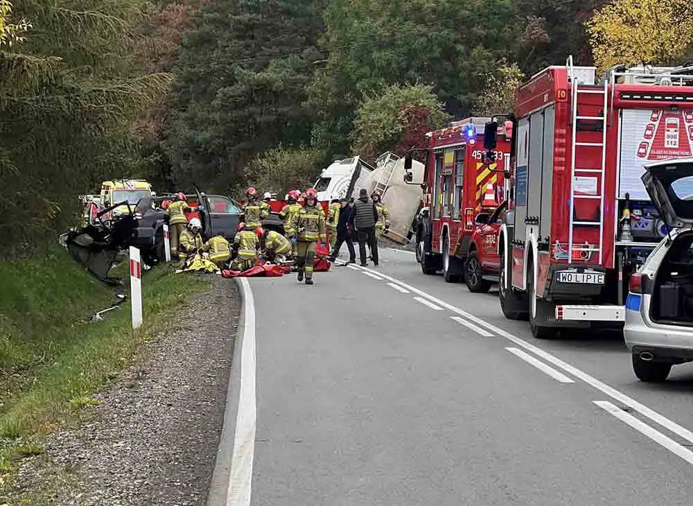Do śmiertelnego wypadku doszło w poniedziałek, 14 października, na drodze w miejscowości Trzylatków. Osobówka zderzyła się z ciężarówką. Zginęły dwie osoby