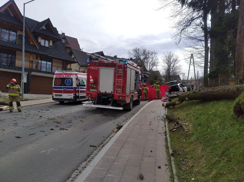 Do tragicznego zdarzenia doszło w poniedziałek, 1 kwietnia, w Zakopanem. Drzewo przewróciło się na jadący samochód. Niestety zginęła jedna osoba.