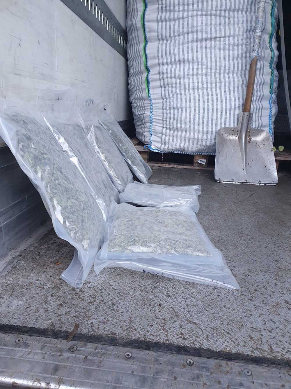 W podpoznańskiej Mosinie na terenie jednej z posesji zatrzymali dwóch mężczyzn zajmujących się przeładunkiem towaru z naczepy ciężarówki do busa. W workach znajdowały się świeże ogórki. Pod kilkuset kilogramową warstwą warzyw ukryte były jednak sprasowane pakiety marihuany.