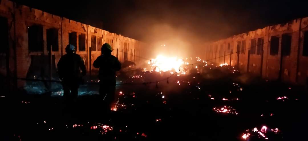 Po dotarciu pierwszego z zastępów strażaków zastano rozległy pożar budynku, który w całości był już objęty ogniem. Do tego przyczynił się zarówno materiał przechowywany w obiekcie, jak i wiejący w nocy wiatr. Działania strażaków ograniczyły się do zabezpieczenia okolicy budynku przed ewentualnym dalszym rozwojem pożarem, a także tłumienia samego ognia wodą podawaną z kilku stron. Działania na miejscu trwały przez kilka godzin