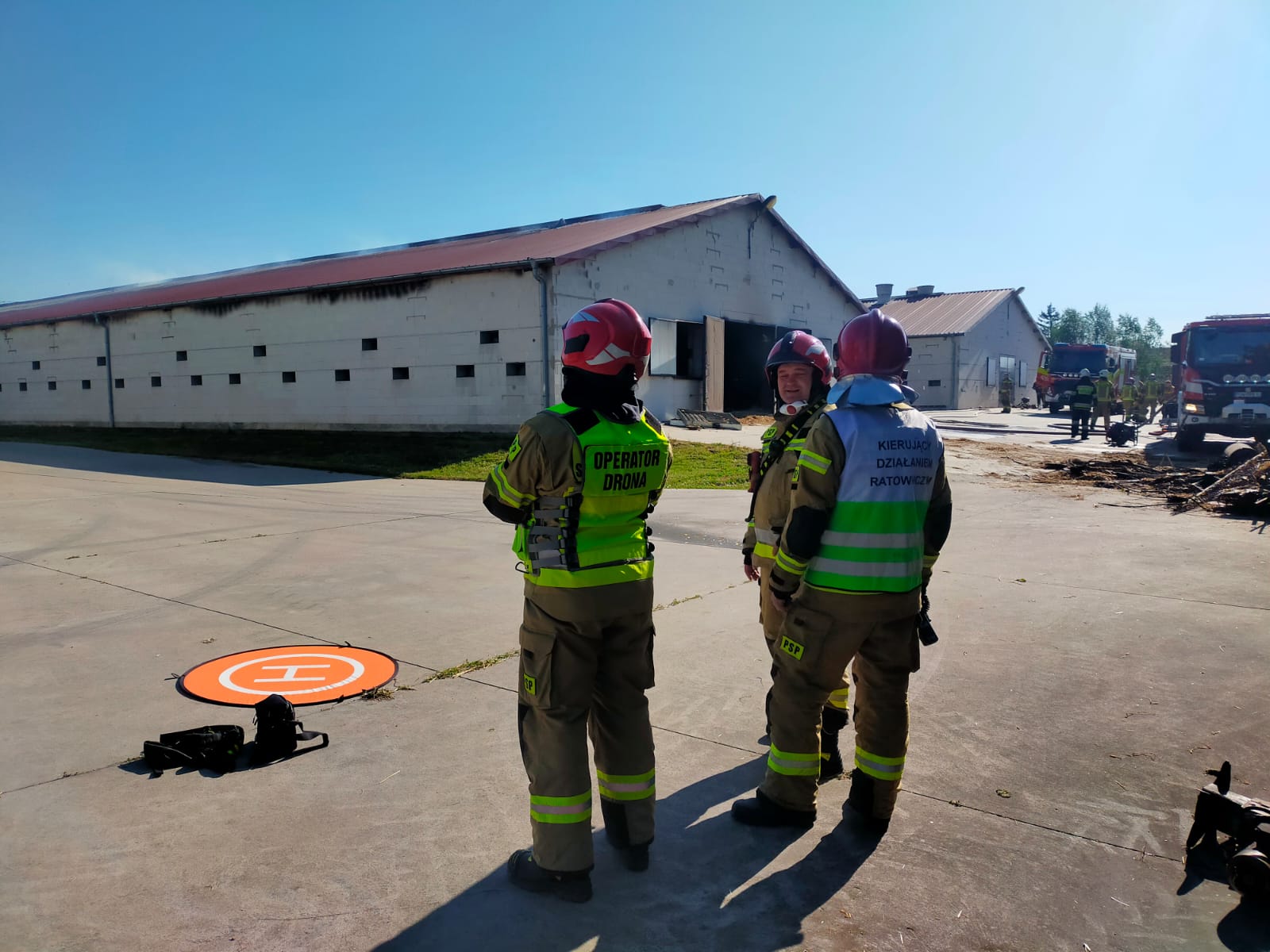 Działania zastępów PSP i OSP polegały na zabezpieczeniu miejsca zdarzenia oraz podaniu prądów gaśniczych do wnętrza budynku po jego obu stronach. Pracownicy zakładu odłączyli dopływ mediów do budynku (gaz, prąd elektryczny, woda). Działania gaśnicze prowadzono w sprzęcie ochrony układu oddechowego (OUO), w tym celu zorganizowano punkt napełniania butli powietrznych ze specjalnej przyczepy ze sprężarką będącej na wyposażeniu jednostki OSP Strzyżewo Smykowe. Teren akcji podzielono na trzy odcinki bojowe, zorganizowano łączność na potrzeby kierującego działaniem ratowniczym na poziomie taktycznym. Zaopatrzenie wodne realizowane z pobliskiego stawu, a w dalszej części działań wykorzystano hydranty zewnętrzne na terenie zakładu i przy remizie OSP. Na odcinkach bojowych (gaśniczych) zbudowano bufory wodne. Dalsze działania zastępów straży pożarnej po lokalizacji pożaru polegały na sukcesywnej rozbiórce uszkodzonego budynku i dogaszaniu tlącej się ściółki wewnątrz kurnika. Teren akcji monitorowano za pomocą bezzałogowego statku powietrznego (dron) przez przybyłą na miejsce zdarzenia grupę operacyjną Wielkopolskiego Komendanta Wojewódzkiego. W działaniach udział wzięły 23 zastępy strażaków z Państwowej Straży Pożarnej i Ochotniczej Straży Pożarnej z terenu powiatów gnieźnieńskiego i wągrowieckiego w sile 90 ratowników. Łączny czas działań wyniósł 11 godzin i 5 minut.