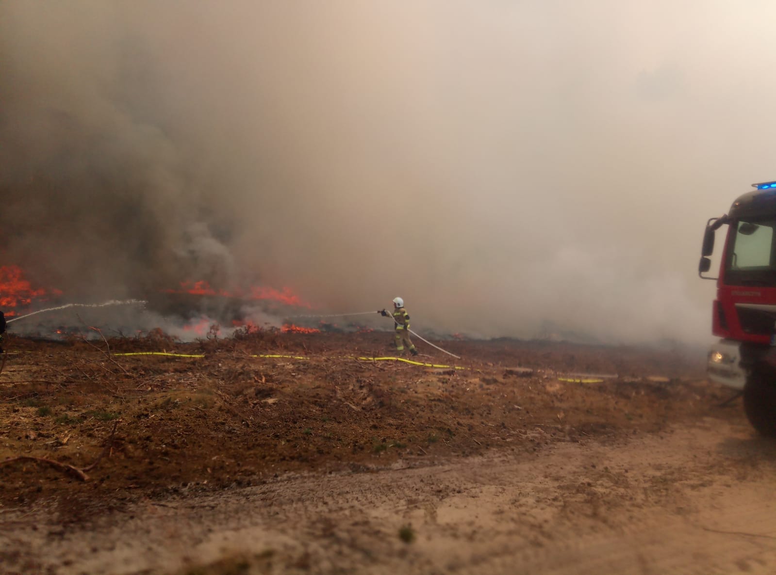 Działania Straży Pożarnej z zaangażowaniem wspierali przedstawiciele Nadleśnictwa Sława Śląska służąc zarówno pomocą merytoryczną, jak i zapewnieniem ciepłych posiłków oraz zapasów wody pitnej.