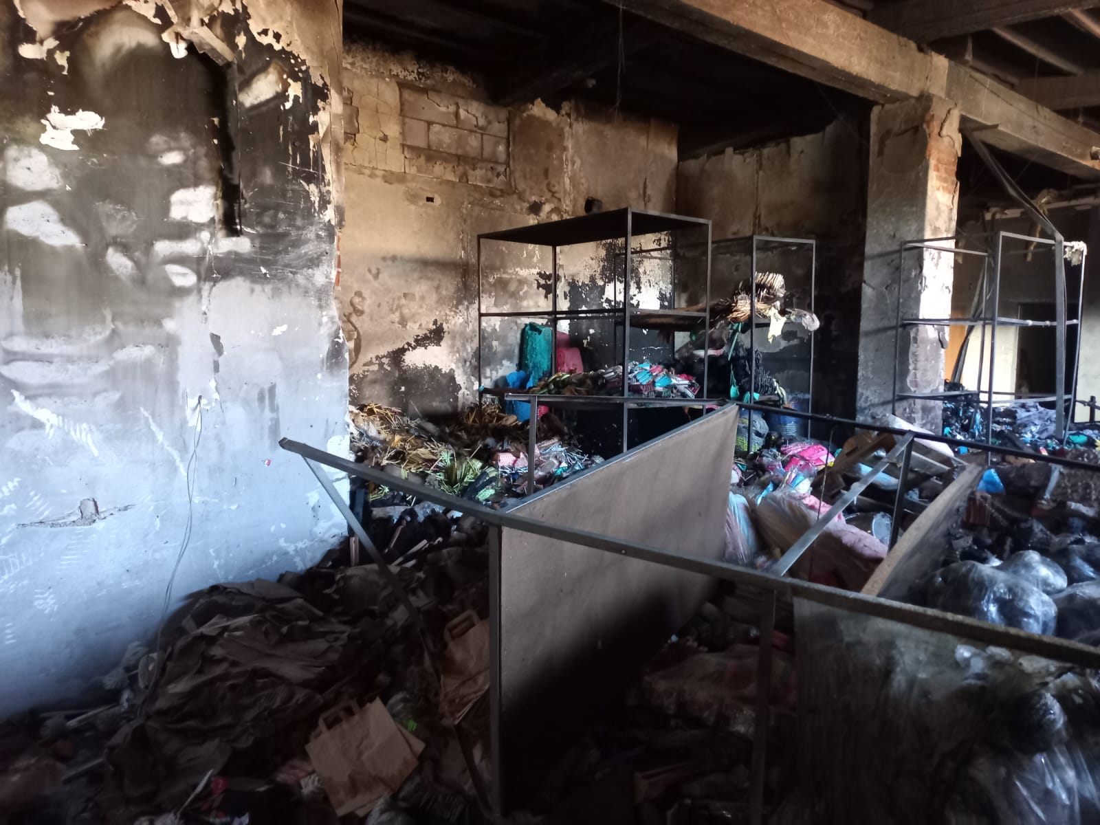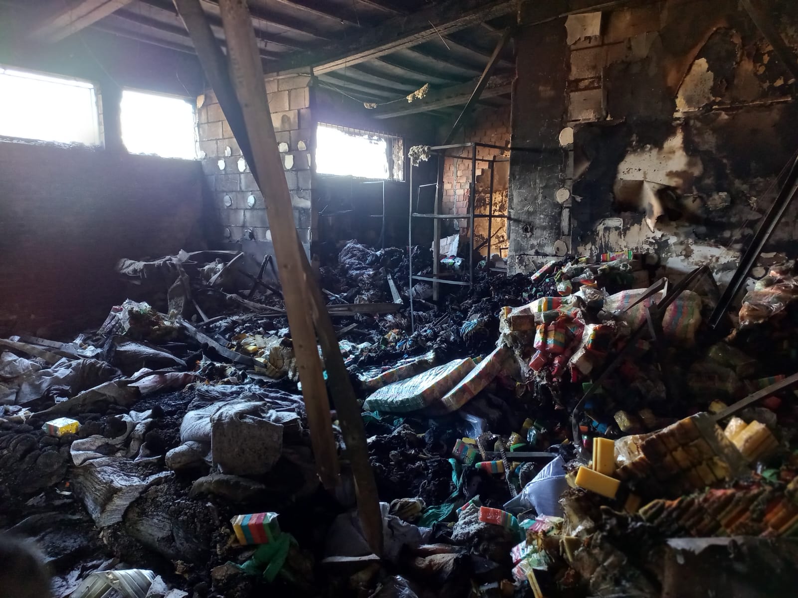 Po przygaszeniu wnętrza i oddymieniu pomieszczeń przystąpiono do ewakuacji mienia. Nadpalone artykuły gospodarstwa domowego i baloty makulatury dogaszono prądami wody.