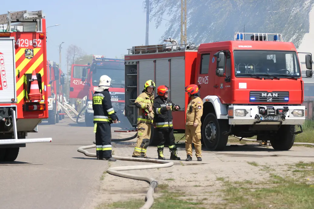 Pożar składowiska makulatury i budynku magazynowego w Człuchowie (woj.pomorskie) na ul. Mickiewicza wybuchł w środę 10 mają około godziny 12:38.