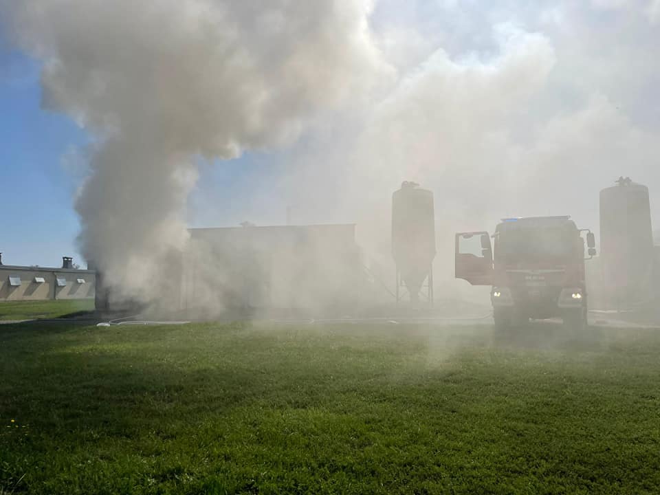 Pierwszy zastęp zastał palący się kurnik wypełniony ok. 350 balotami słomy. W kurniku nie znajdowały się zwierzęta. Panowało bardzo duże zadymienie.