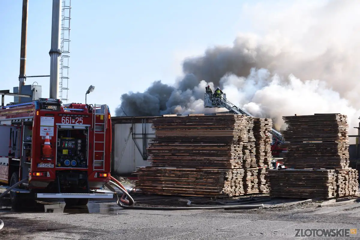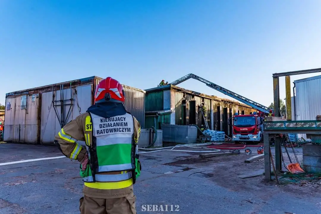 Ze względu na charakter pożaru, bezpośrednie sąsiedztwo pozostałych zabudowań i placy składowych na miejsce zdarzenia zadysponowane znacznie siły i środki OSP i PSP, łącznie 23 pojazdy ratowniczo-gaśnicze i specjalne w obsadzie 108 strażaków.