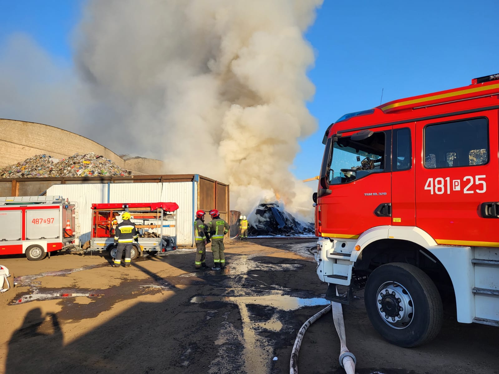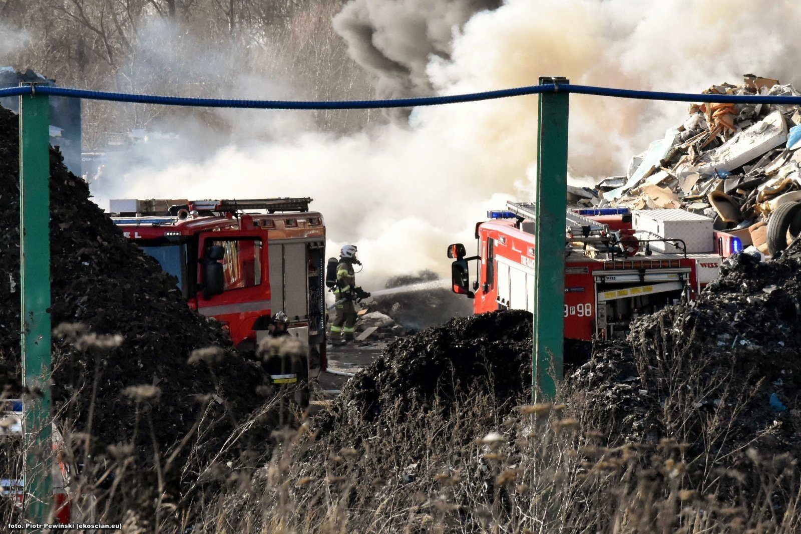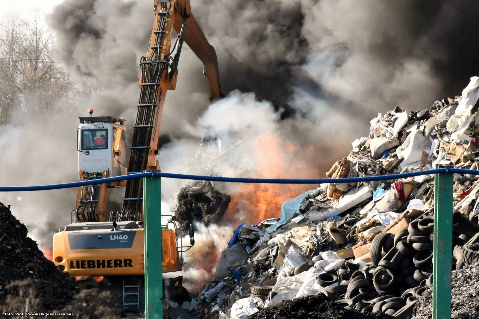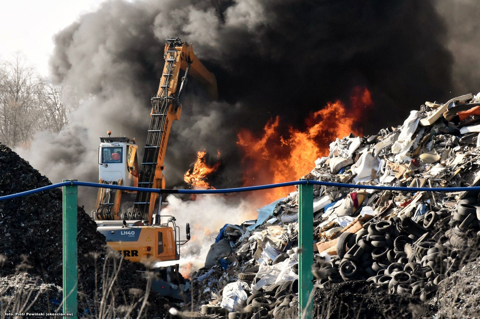 W kulminacyjnym momencie z pożarem w zakładzie przetwórstwa odpadów w Przysiece Polskiej koło Kościana walczyło, aż dwadzieścia sześć zastępów straży pożarnej.