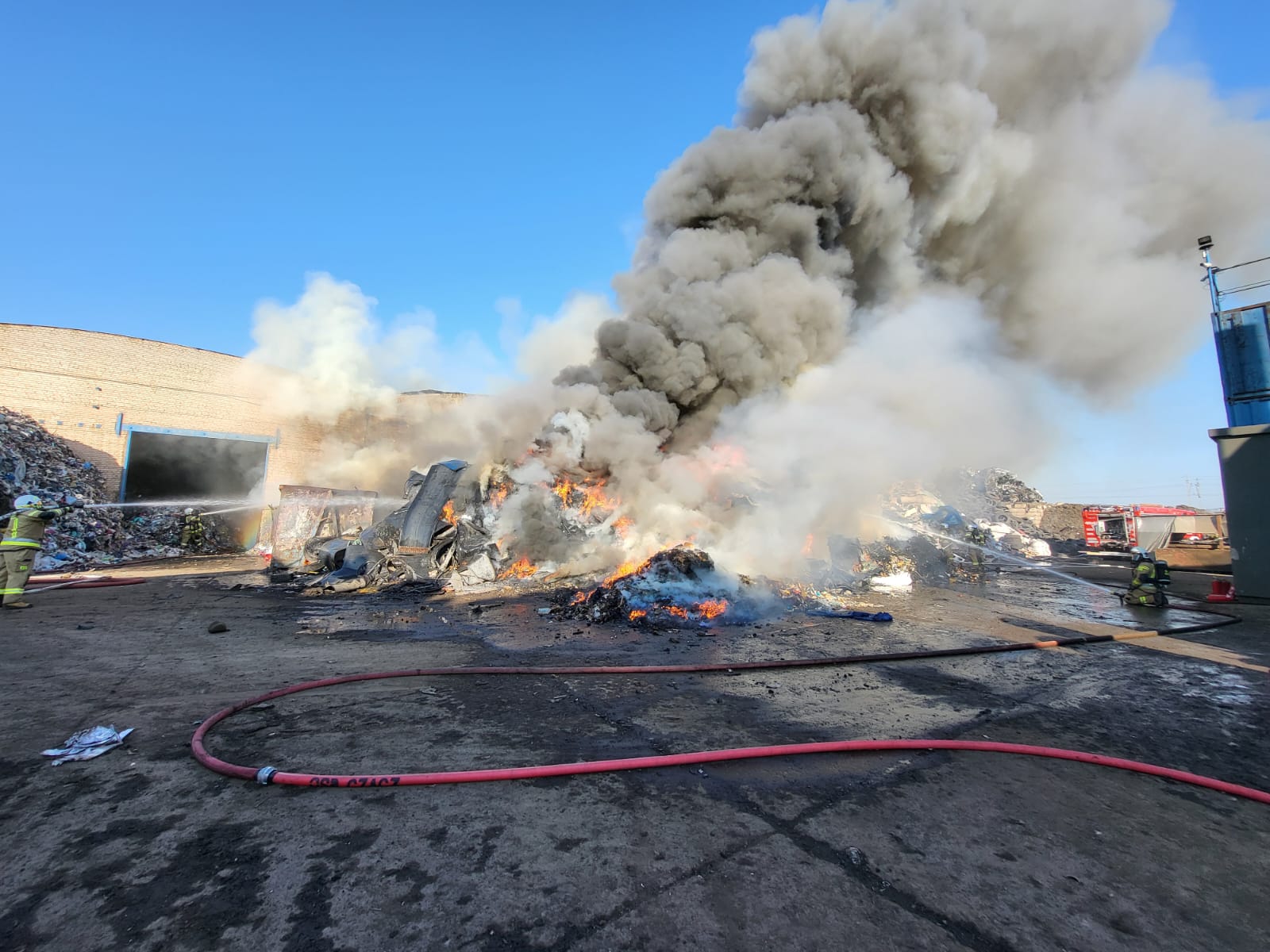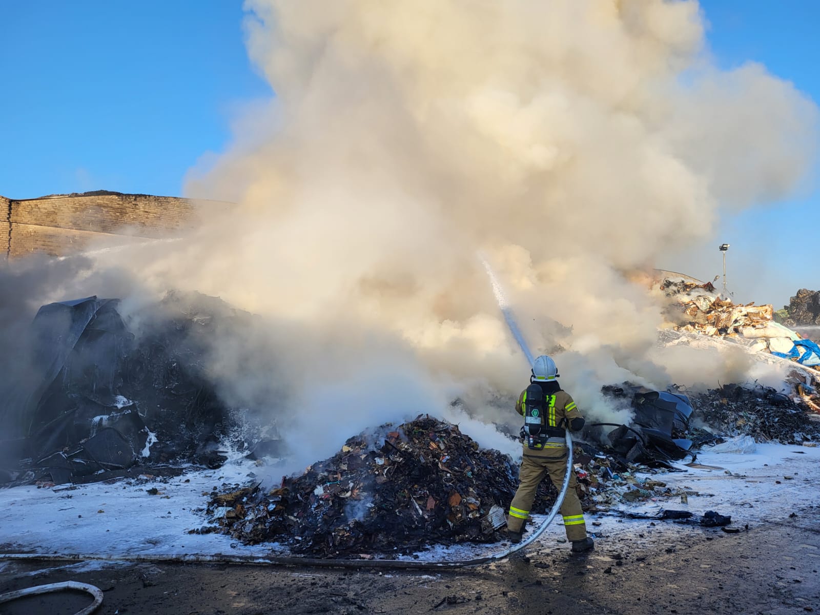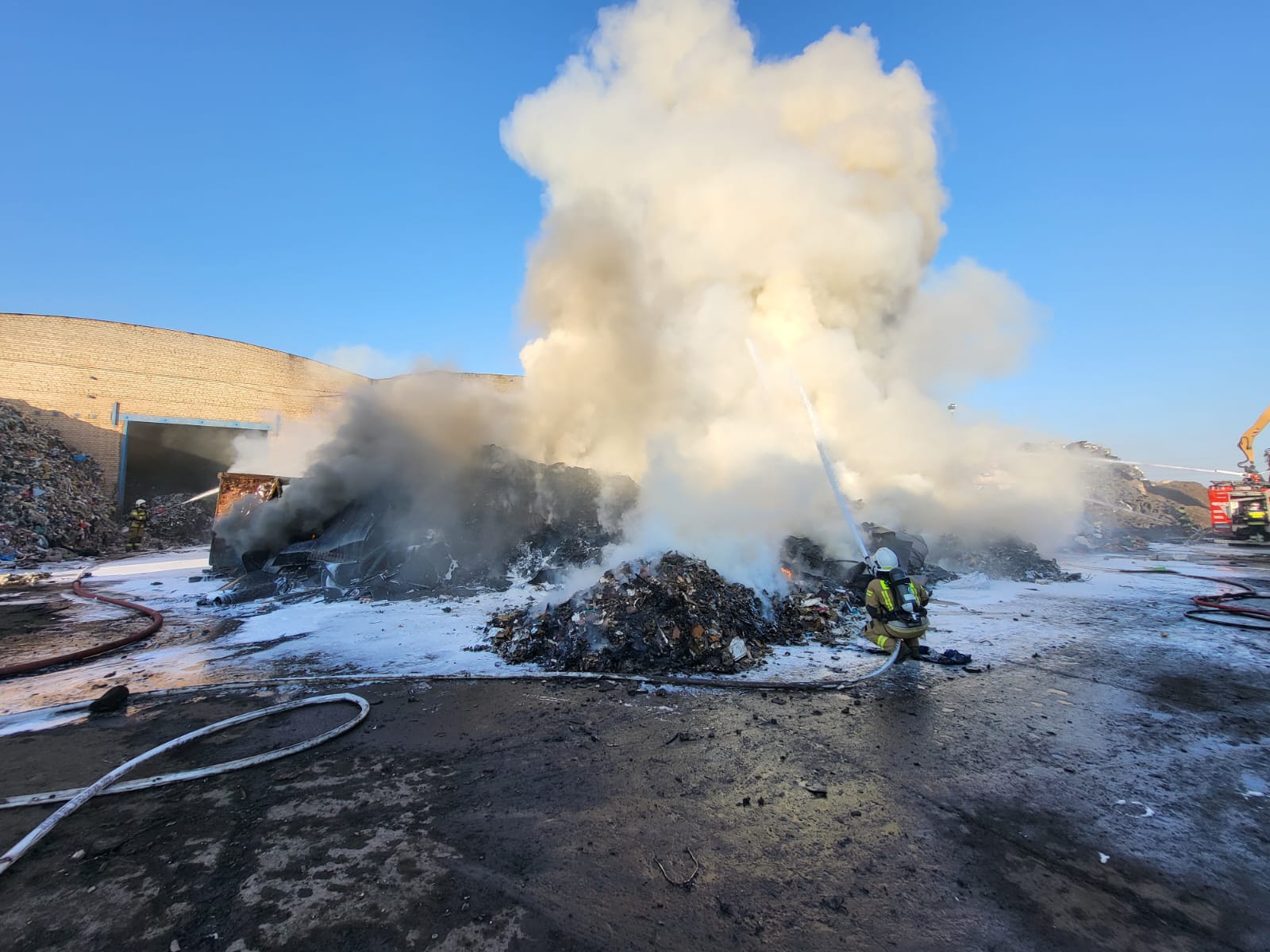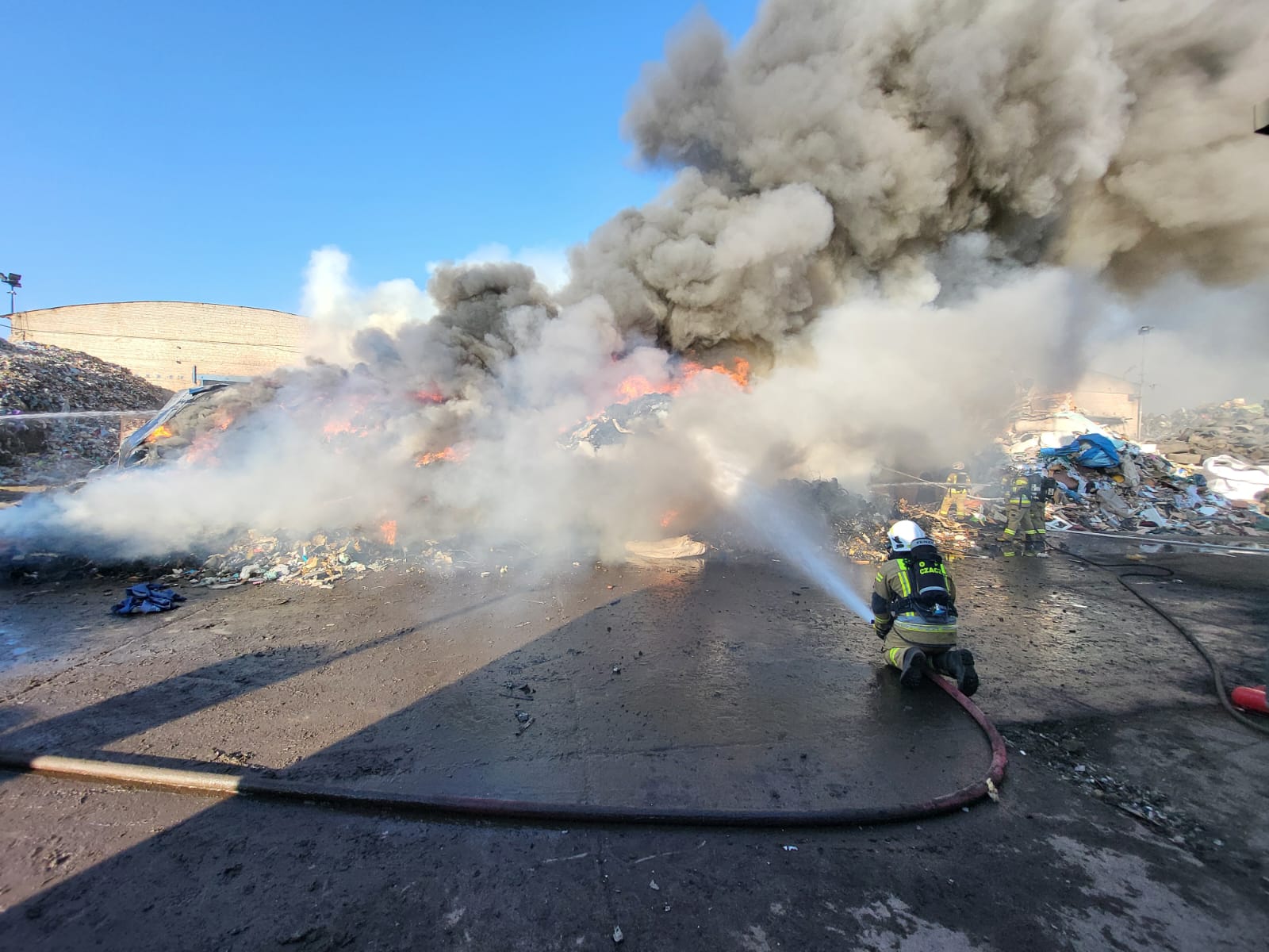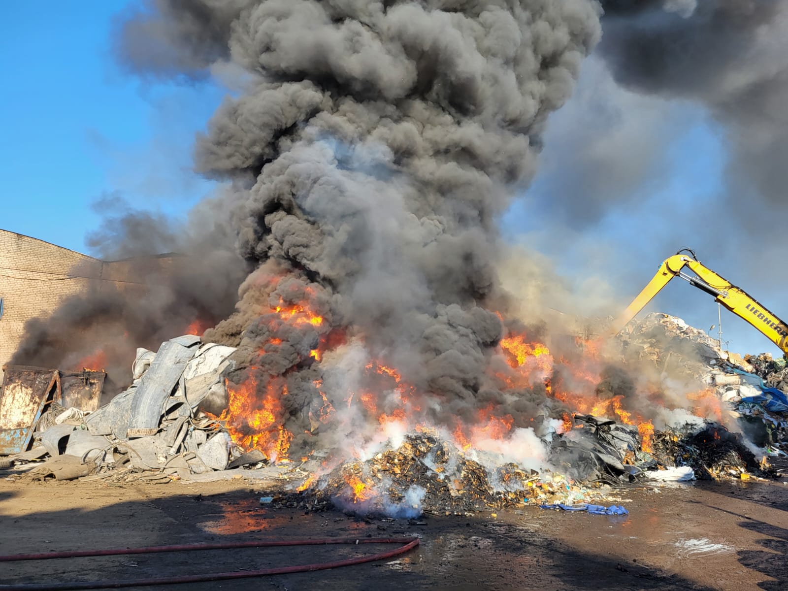 Po dotarciu na miejsce i przeprowadzonym rozpoznaniu stwierdzono, że pożar ma miejsce na terenie zakładu zajmującego się skupem i przetwarzaniem złomu i odpadów. Pożarem objęte były dwie hałdy odpadów częściowo przetworzonych, częściowo nieprzetworzonych, gumowe pianki i tym podobne elementy. Strażacy przystąpili do gaszenia i równolegle sprawdzono, czy nikt nie został poszkodowany.