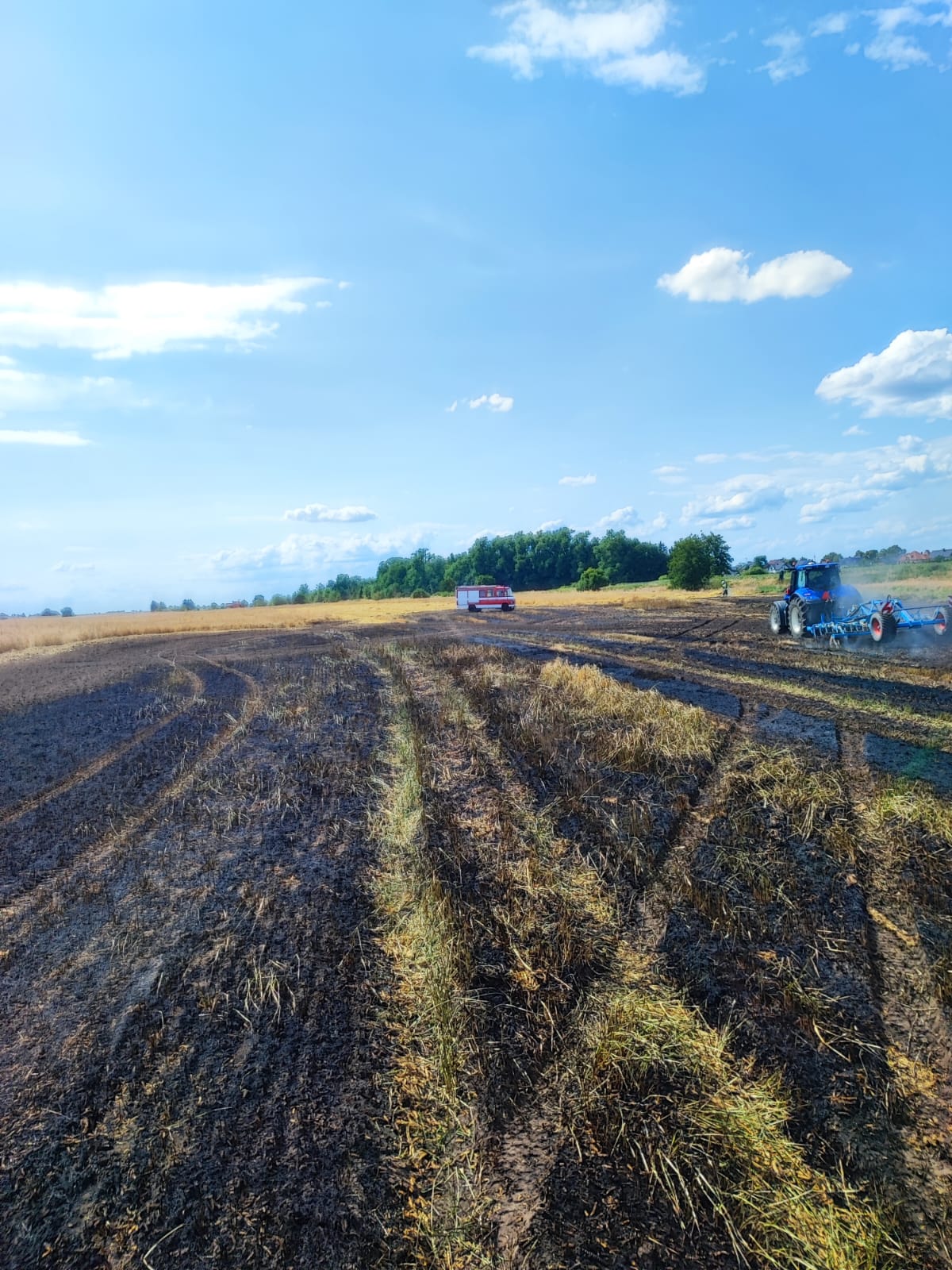 Na miejscu był właściciel i okoliczni rolnicy, którzy przystąpili do orania pola w celu zminimalizowania pożaru.
