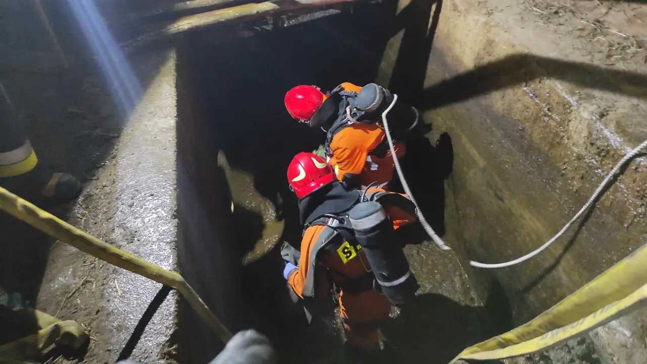 Strażacy w pierwszym etapie działań przy pomocy HDS-a opuścili betonową płytę do otworu rewizyjnego aby zabezpieczyć zwierzęta oraz ratowników przed wpadnięciem do najgłębszego punktu zbiornika. Zabezpieczeni w aparaty ochrony dróg oddechowych, ubrania do działań w wodzie oraz linki ratownicze przystąpili do drugiego etapu działań i zostali spuszczeni do wnętrza zbiornika. Po dotarciu do pierwszego zwierzęcia ratownicy założyli mu uprząż z liny na głowę i przeprowadzili pod otworem rewizyjnym, gdzie został wyciągnięty przy użyciu zawiesi i ciągnika z ładowaczem czołowym. Następnie czynność tę powtórzono z drugim bykiem.