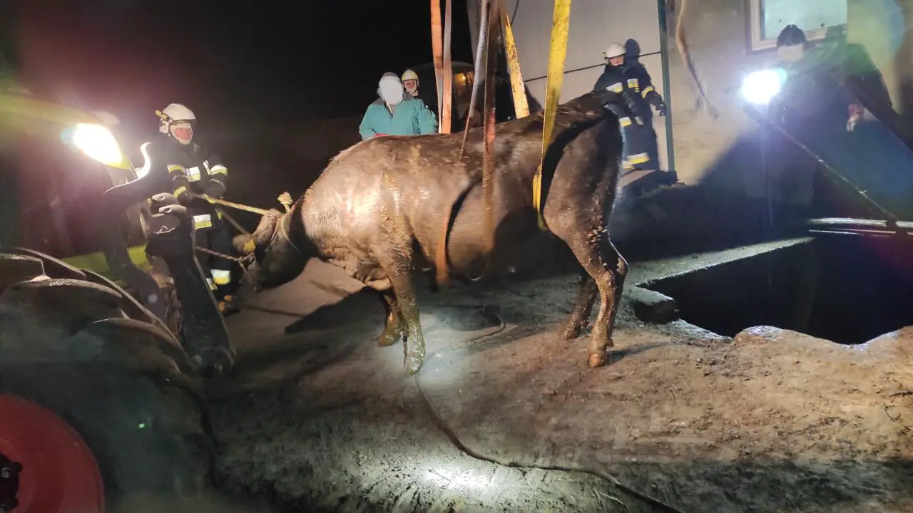 Do zdarzenia doszło 10 marca, tuż po godzinie 23:00 dyżurny SKKM PSP w Koninie otrzymał zgłoszenie o dwóch bykach, które wpadły do zbiornika z gnojownicą.