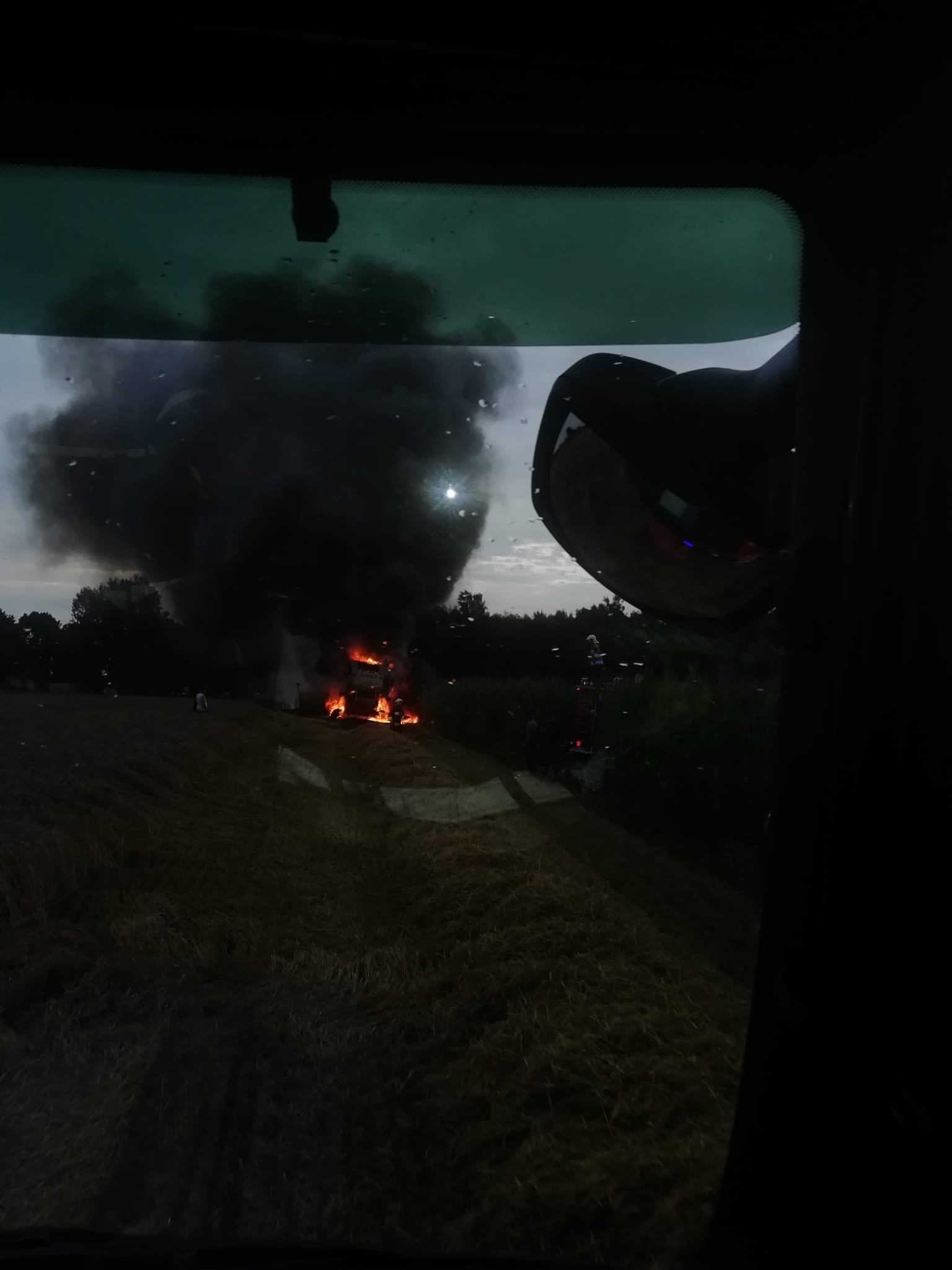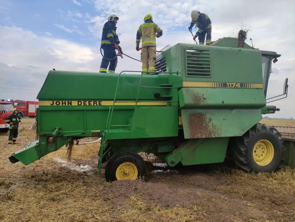 Pożar kombajnu w Mokronosach zakończył się szczęśliwi na spalonej komorze silnika. W drugim przypadku niestety spłonął cały kombajn.