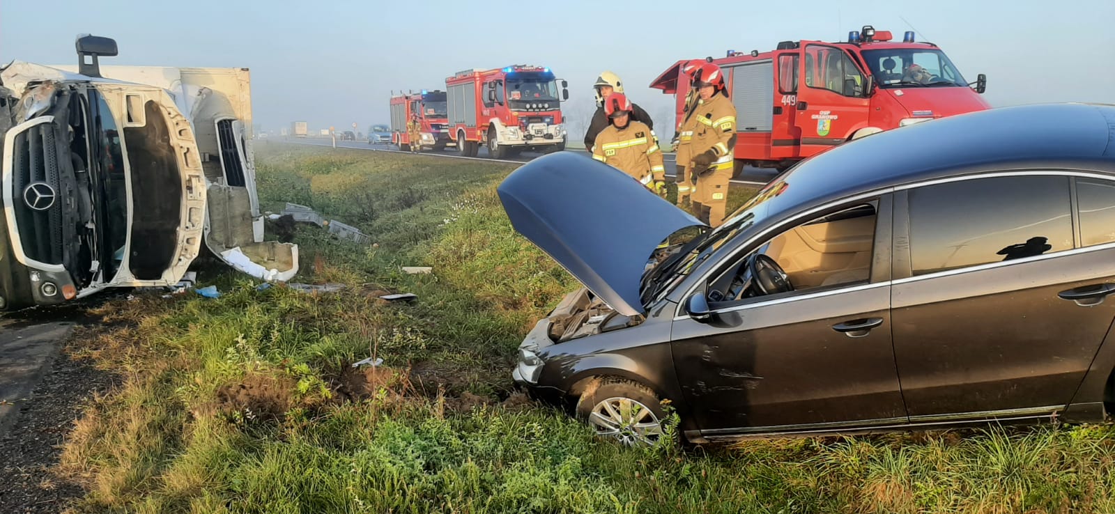 Po dojeździe na miejsce potwierdzono, że doszło do zderzenia dwóch pojazdów. Samochód dostawczy znajdował się na boku.