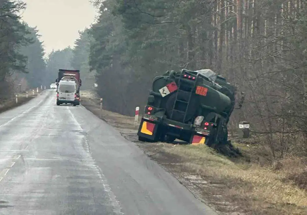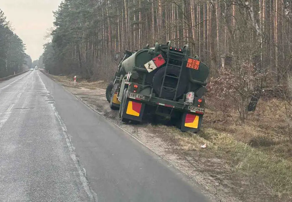 Do zdarzenia doszło we wtorek, 21 stycznia, około kilometra za Nowogrodem Bobrzańskim w kierunku Lubska. Dwie ciężarówki cysterny amerykańskiego wojska wypadły z drogi.
