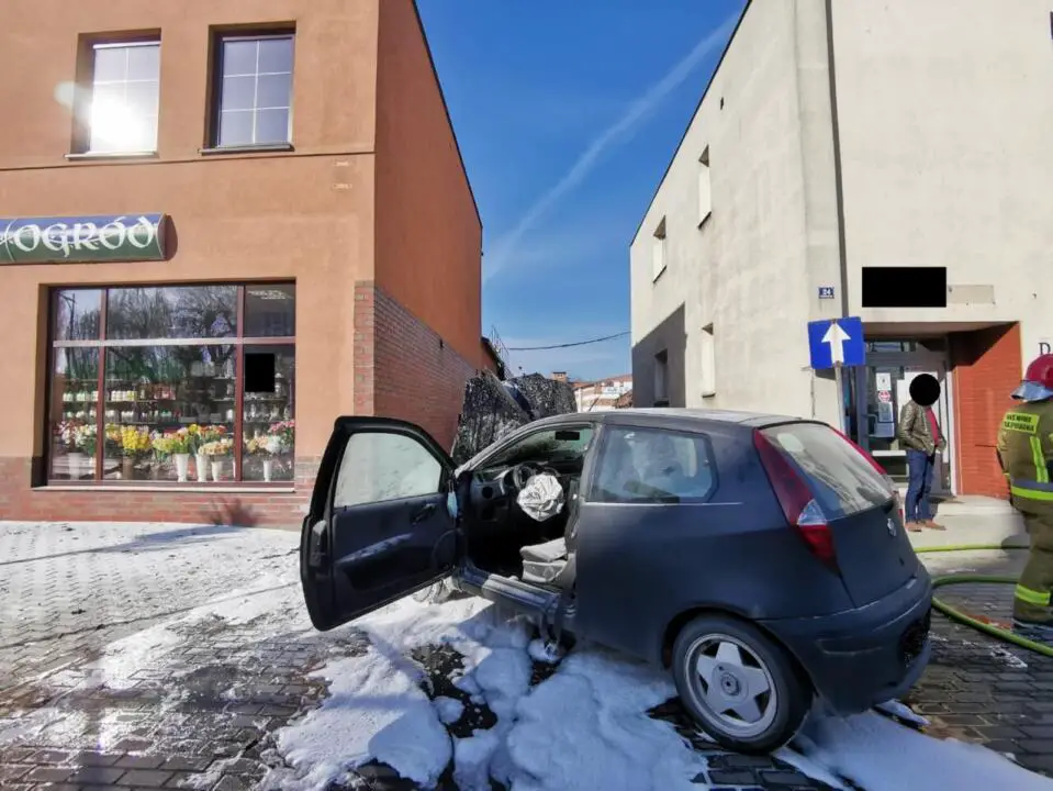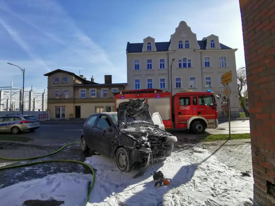 Do zdarzenia doszło na ulicy Dworcowej. Na miejsce natychmiast zadysponowano dwa zastępy strażaków zawodowych z Jednostki Ratowniczo-Gaśniczej z Szamotuł. Po dojeździe na miejsce zdarzenia strażacy zastali samochód osobowy, który uderzył w budynek sklepu ogrodniczego oraz pożar komory silnika. Kierujący opuścił pojazd przed przybyciem strażaków i znajdował się w pobliżu pod opieką świadków zdarzenia.