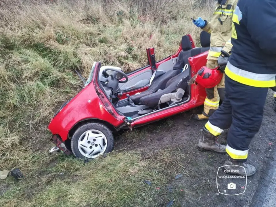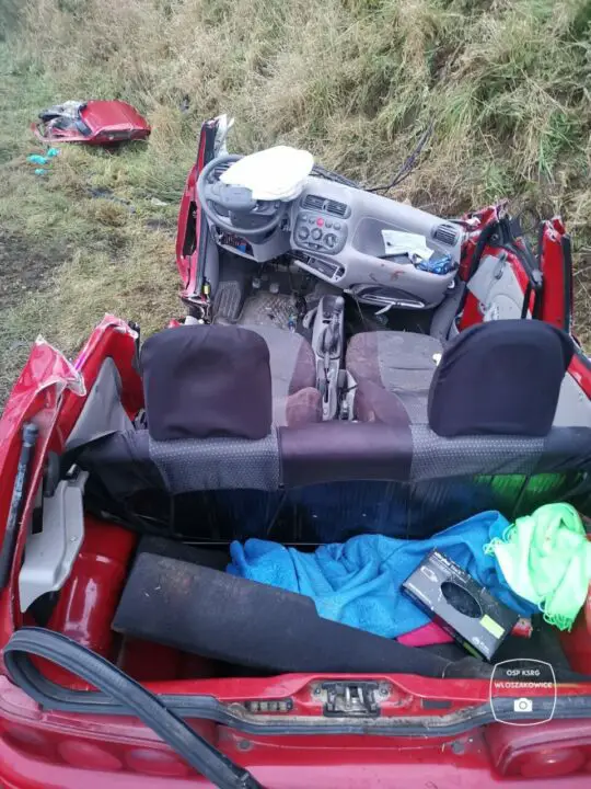 Po dojeździe pierwszych służb na miejsce potwierdzono zgłoszenie, a zarazem zastano samochód osobowy marki Fiat, który znajdował się w rowie, a w pojeździe uwięziona kierująca oraz samochód dostawczy, który miał rozbity przód oraz urwane lewe koło i znajdował się na środku jezdni. Strażacy by wydostać kobietę z rozbitego auta musieli użyć narzędzi hydraulicznych.