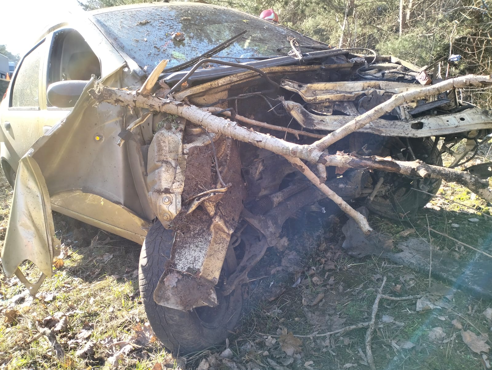 O sporym szczęściu może mówić młody mężczyzna mieszkaniec Nowego Tomyśla. Prowadzony przez niego Fiat wypadł z drogi i uderzył w drzewo, a następnie dachował.