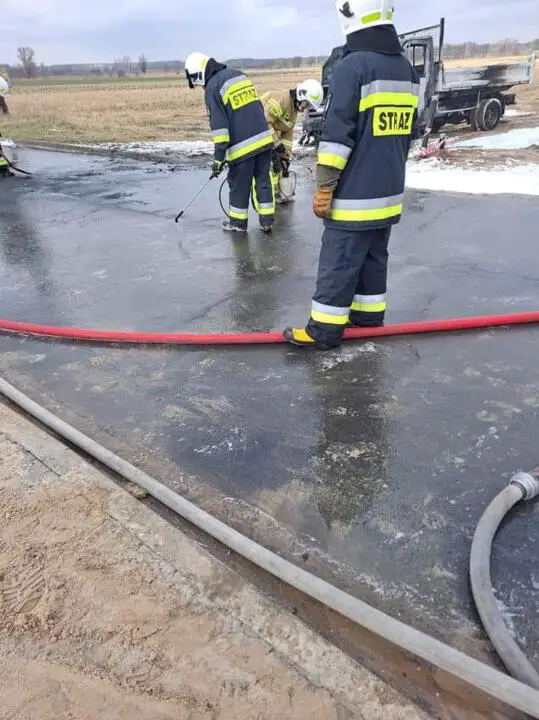 Do pożaru doszło na drodze powiatowej nieopodal granicy województwa Wielkopolskiego oraz Lubuskiego. Na miejsce niezwłocznie z obydwu województw zadysponowano liczne siły i środki straży pożarnej. Z województwa Wielkopolskiego jeden zastęp strażaków zawodowych z Jednostki Ratowniczo-Gaśniczej z Leszna, ochotników z Wijewa, Brenna i Potrzebowa oraz z województwa Lubuskiego po jednym zastępie z Jednostki Ratowniczo-Gaśniczej Wschowa i ochotników z OSP Sława. Na miejsce zadysponowano również patrol policji. Łącznie w akcję zaangażowane było sześć zastępów straży pożarnej.