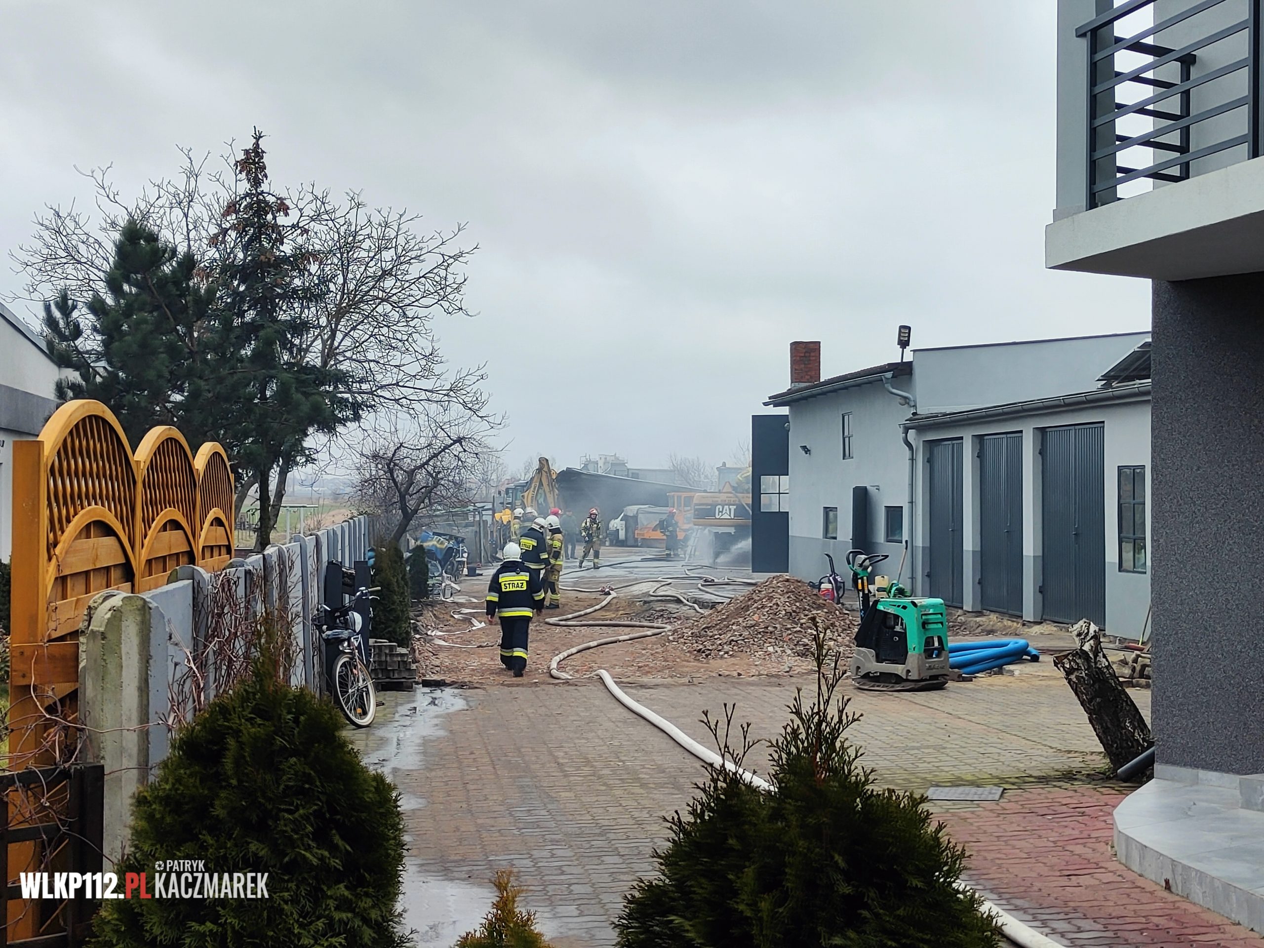 Pożar miał miejsce na zewnątrz, jednak zagrożona była kolejna koparka i budynek warsztatowy. Strażacy podali prądy wody na palące się elementy tłumiąc pożar. Udało się opanować płomienie nie dopuszczając do ich rozprzestrzenienia się.