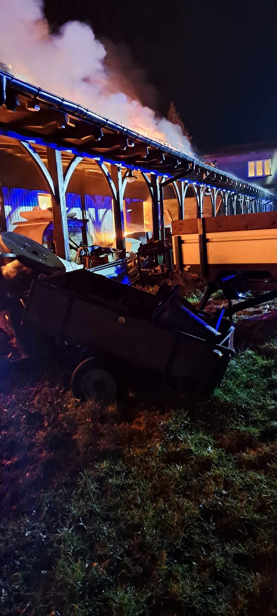 Po przybyciu na miejsce zdarzenia jednostek straży pożarnej zastano w całości objęty ogniem budynek gospodarczy częściowo zaadoptowany na funkcję mieszkalną. W momencie pożaru w budynku nie przebywały żadne osoby. W bliskim sąsiedztwie obiektu objętego ogniem zlokalizowany był zagrożony budynek mieszkalny.