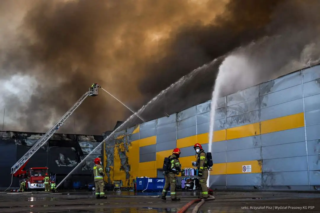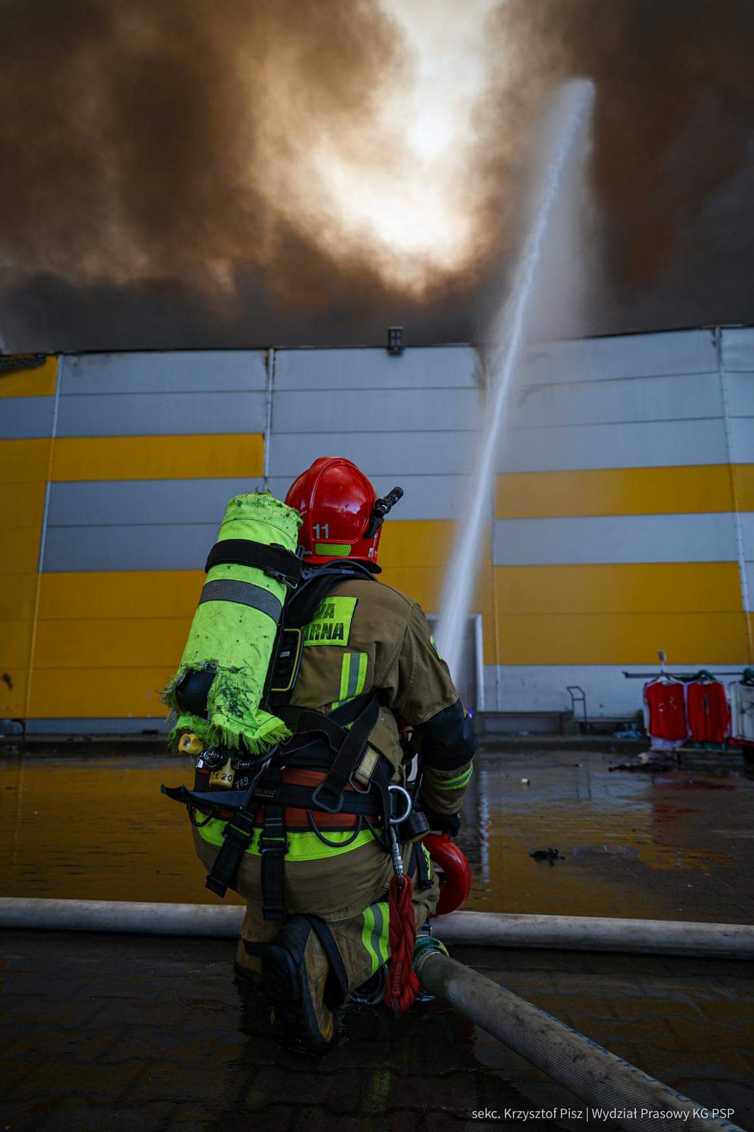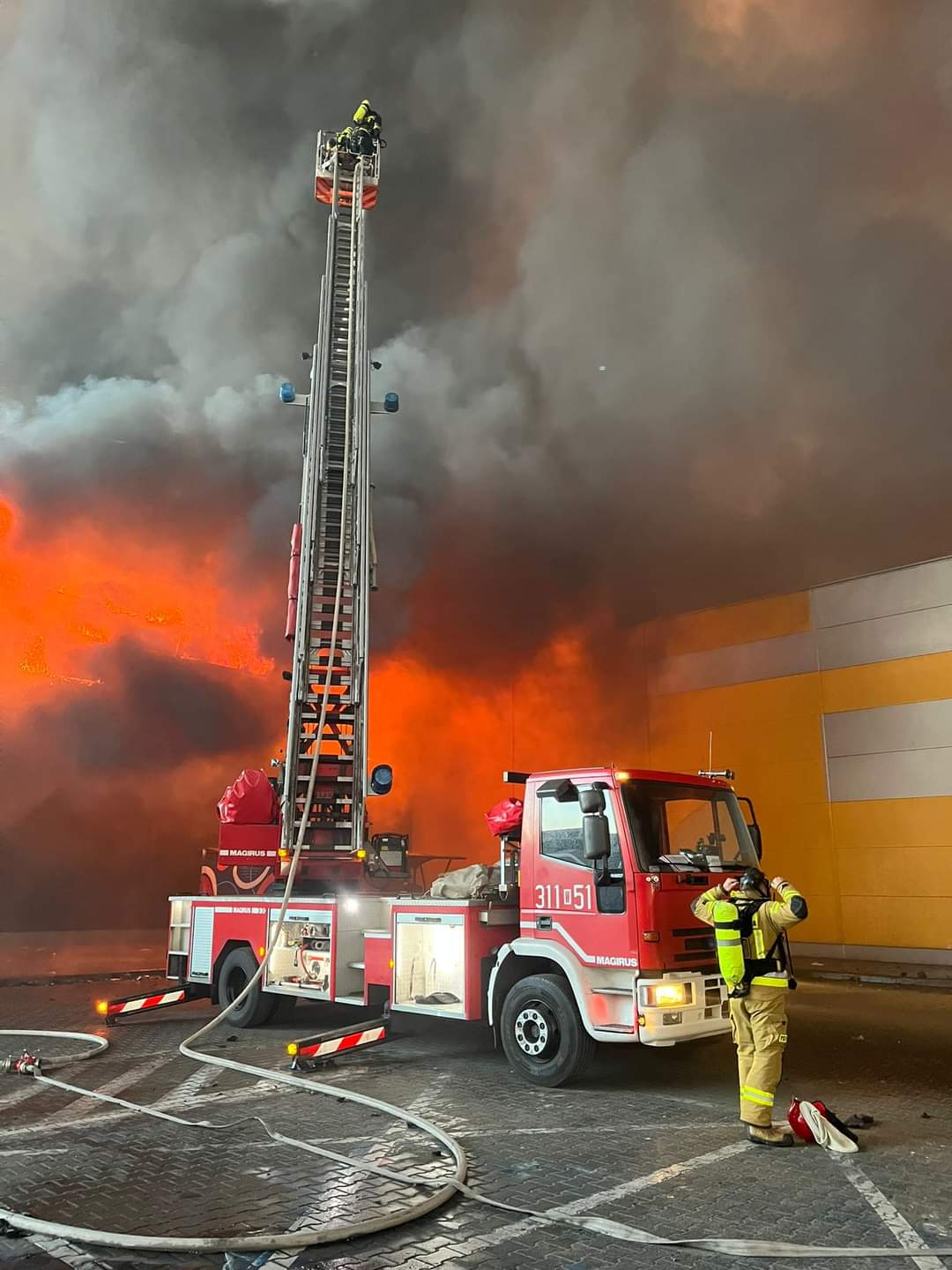 Do pożaru doszło w Warszawie przy ulicy Marywilskiej. Pożarem objęte jest całe centrum handlowe.