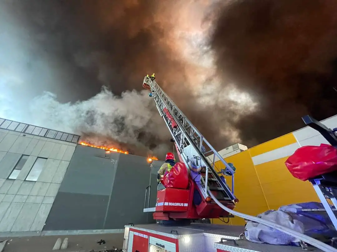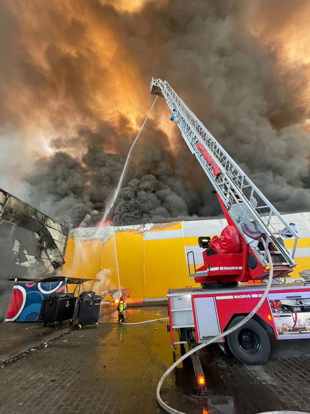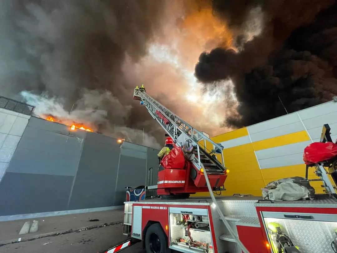 Blisko aż dwustu strażaków walczy z ogromnym pożarem centrum handlowego.