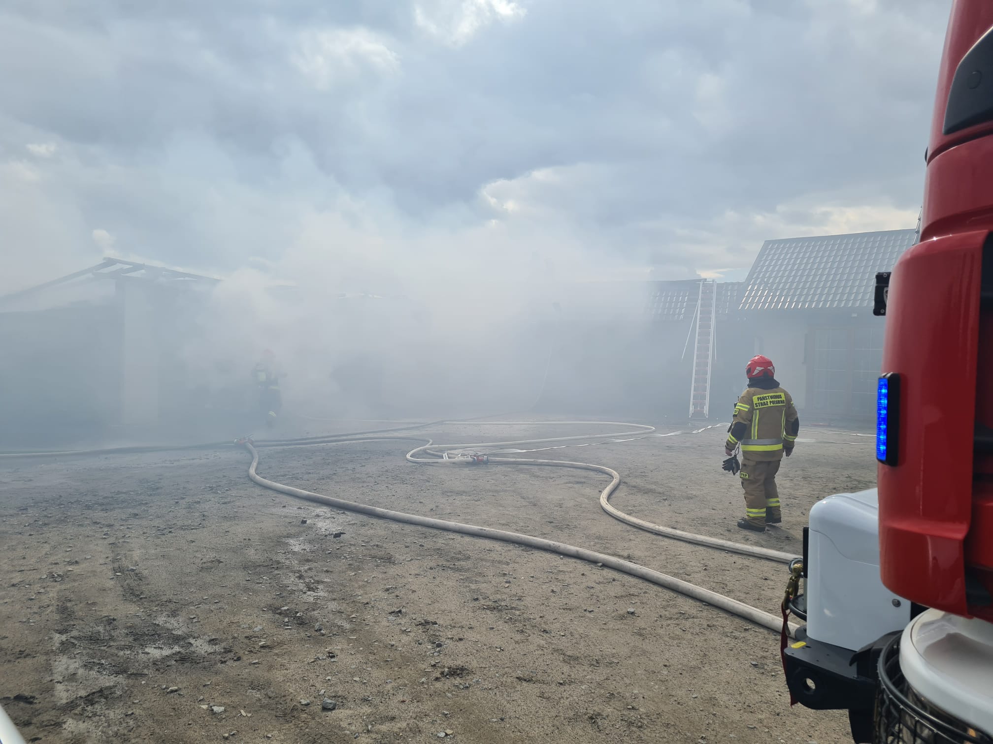 Dalsze czynności polegały na usuwaniu wyposażenia i dogaszaniu poza obiektem. Po oddymieniu sprawdzono obiekt za pomocą kamery termowizyjnej. Nie stwierdzono zagrożenia. Teren zdarzenia przekazano właścicielowi.