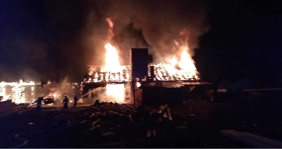Po przybyciu na miejsce zdarzenia pierwszych podmiotów ratowniczych stwierdzono silnie rozwinięty pożar budynku tartaku. Działania zastępów straży pożarnej polegały na zabezpieczeniu terenu działań, obronie sąsiadujących budynków oraz podaniu prądów wody w natarciu na palący się zakład. Po lokalizacji pożaru teren pogorzeliska dokładnie przelano wodą likwidując zarzewia ognia. W wyniku zdarzenia nikt nie uległ obrażeniom.