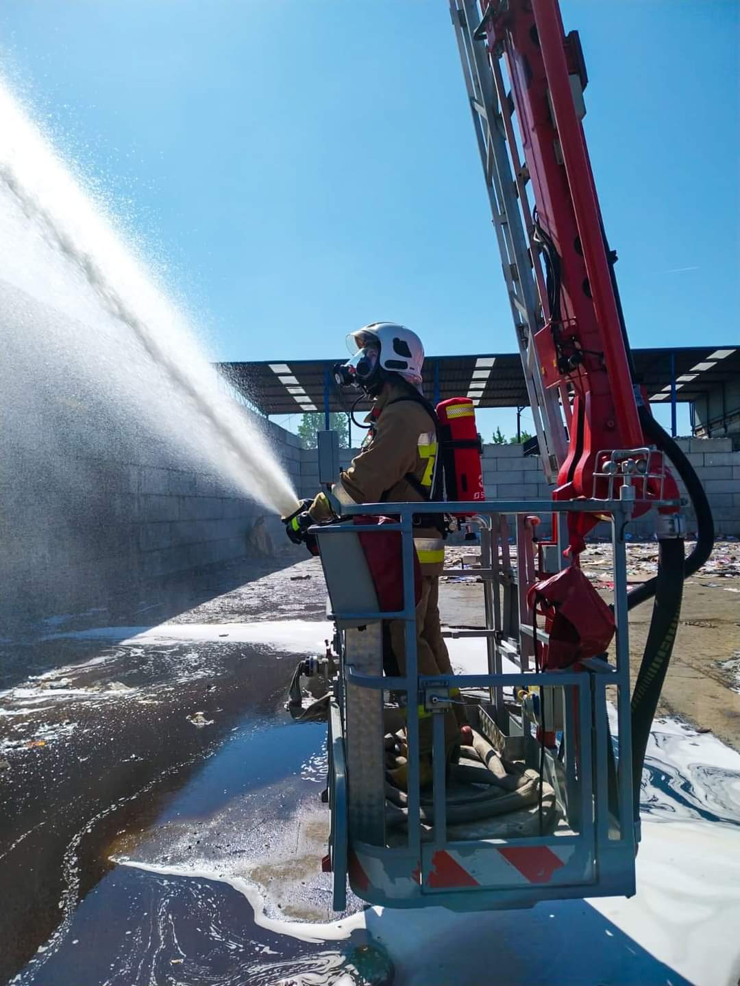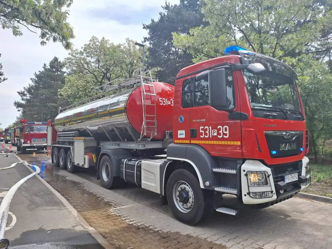 Podczas działań korzystano z 9 samochodów ratowniczo-gaśniczych klasy ciężkiej, 18 średnich, 3 lekkich, samochodu specjalnego z drabiną mechaniczną, pojazdu z podnośnikiem hydraulicznym, 2 autocystern, samochodu wężowego, samochodu dowodzenia i łączności, nośnika i kontenera ze sprzętem ochrony układu oddechowego, a także wozów rozpoznawczo-ratowniczych i operacyjnych.