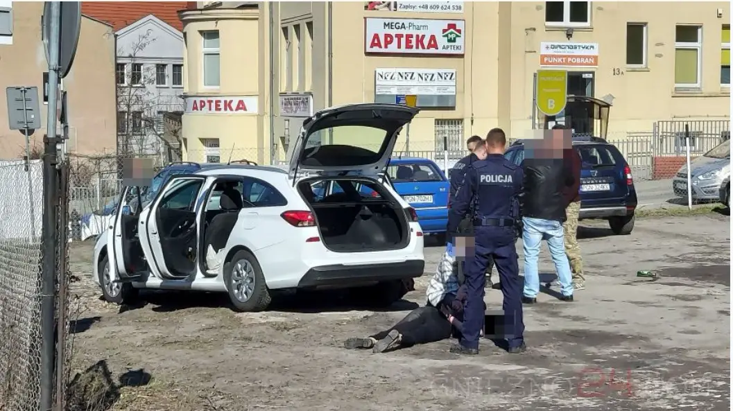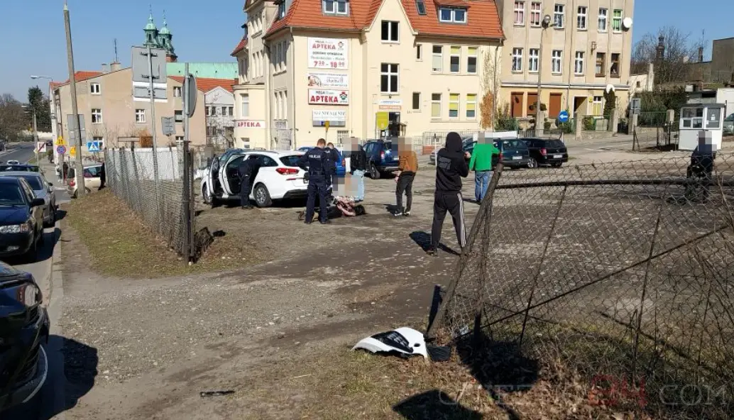 Za autem mieli wyruszyć świadkowie zdarzenia, a o całej sytuacji powiadomiono policję. Pościg trwał do Gniezna, gdzie Hyundai z ul. Poznańskiej skierował się w ul. Łaskiego, a dalej na ul. Jeziorną. Tutaj przejazd został mu zablokowany przez inne auta – wówczas samochód wjechał na parking i tam doszło do zatrzymania podróżujących nim kobiety i mężczyzny.