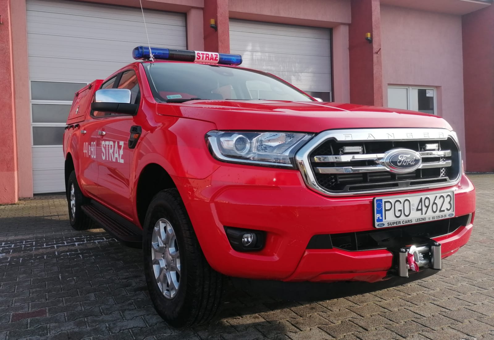 Ford Ranger to terenowy samochód umożliwiający sprawne poruszanie się również poza drogami utwardzonymi. Samochód oprócz standardowego wyposażenia uzbrojony został w sygnalizację świetlną, wyciągarkę zamontowaną z przodu oraz hak holowniczy, który umożliwi holowanie przyczep ze sprzętem.