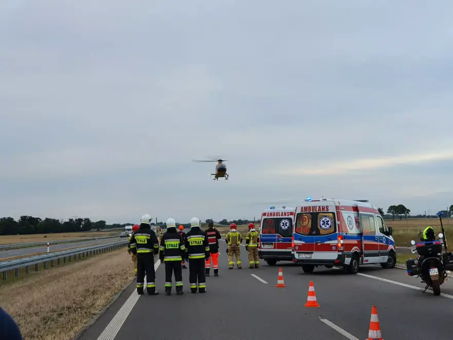 Do groźnego dachowania doszło na drodze ekspresowej S5 pomiędzy węzłami Kościan Północ i Czempiń. Prowadzone przez 28-latke BMW dachowało. W akcje zaangażowano śmigłowiec Lotniczego Pogotowia Ratunkowego.
