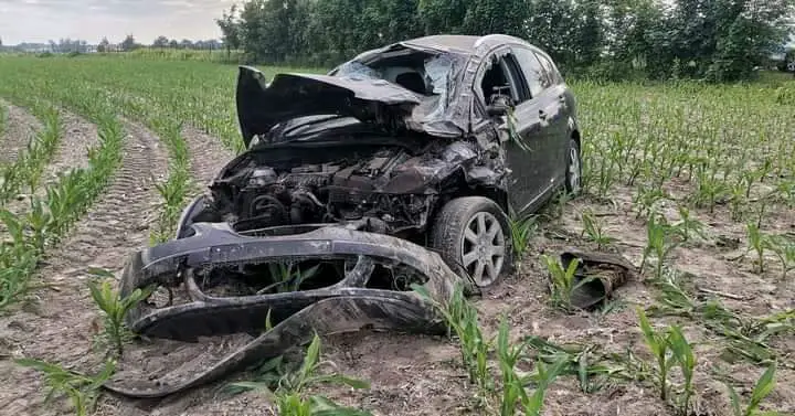 Po dojeździe na miejsce zdarzenia zastępu z OSP Buk zauważono mocno rozbity samochód osobowy w polu po dachowaniu. Jak się okazało, wypadek miał miejsce na terenie powiatu nowotomyskiego z racji tego zadysponowano kolejne siły i środki straży pożarnej.