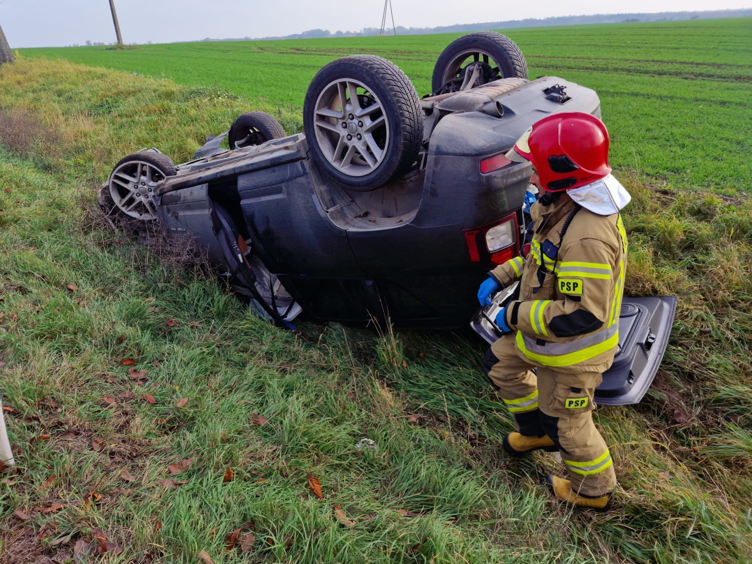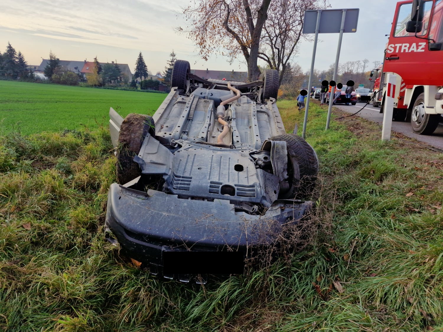 Po dojeździe na miejsce zdarzenia strażacy zastali samochód osobowy po dachowaniu, który znajdował się w przydrożnym rowie. Osoby podróżujące opuściły pojazd przed przybyciem straży pożarnej i znajdowały się w pobliżu pod opieką świadków zdarzenia – informuje Łukasz Kawka z Szamotulskiej Straży Pożarnej