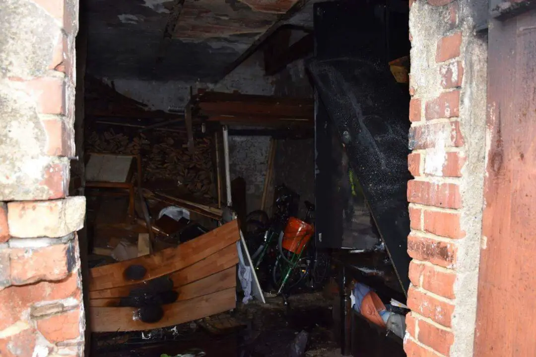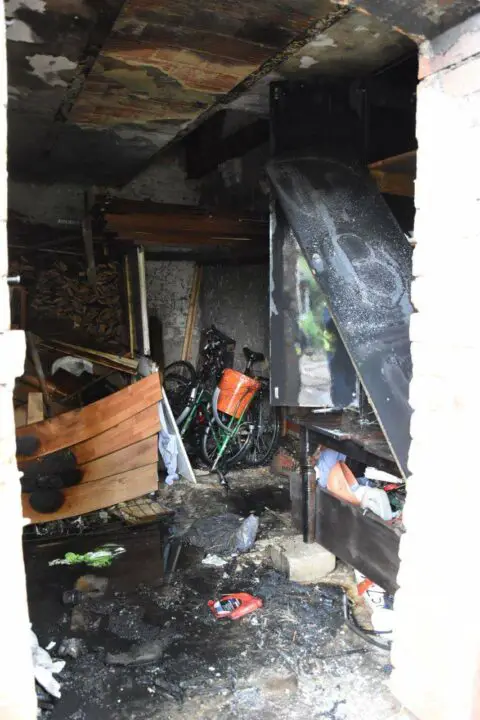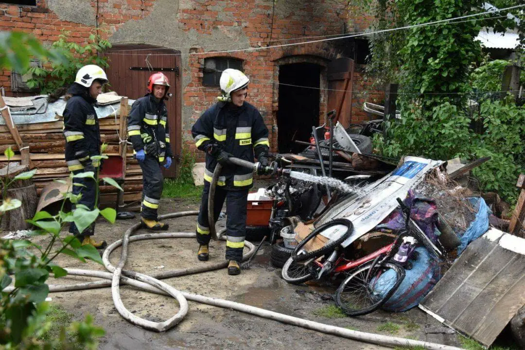 Po dojedzie na miejsce strażacy podali prądy wody na palący się budynek gospodarczy. Całkowitemu spaleniu uległy różne składowane rzeczy oraz skuter.