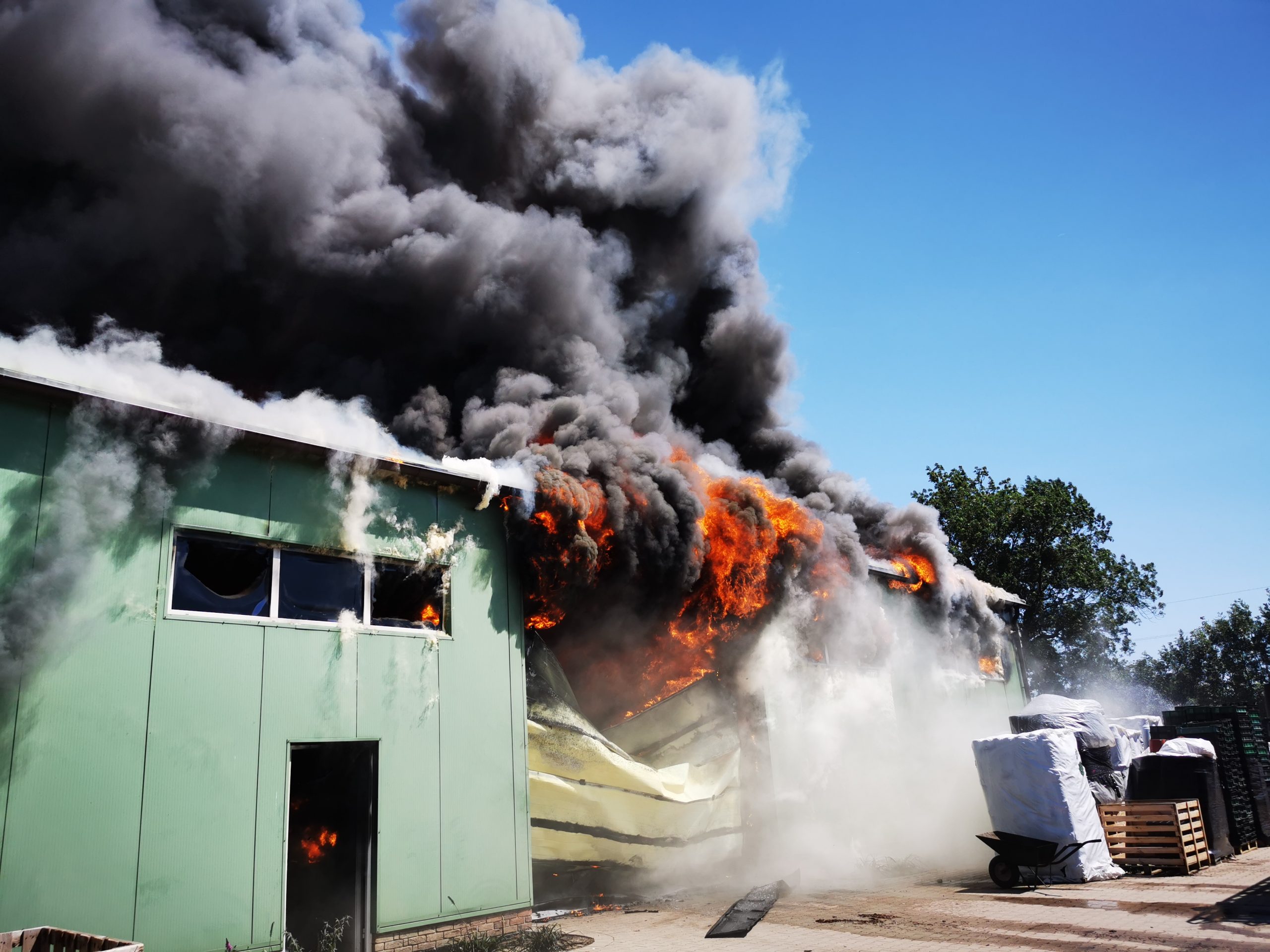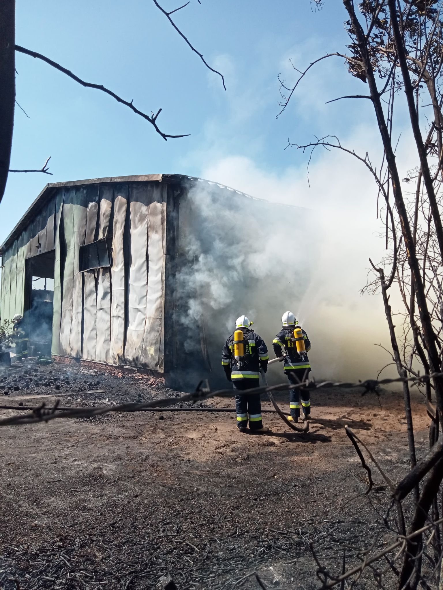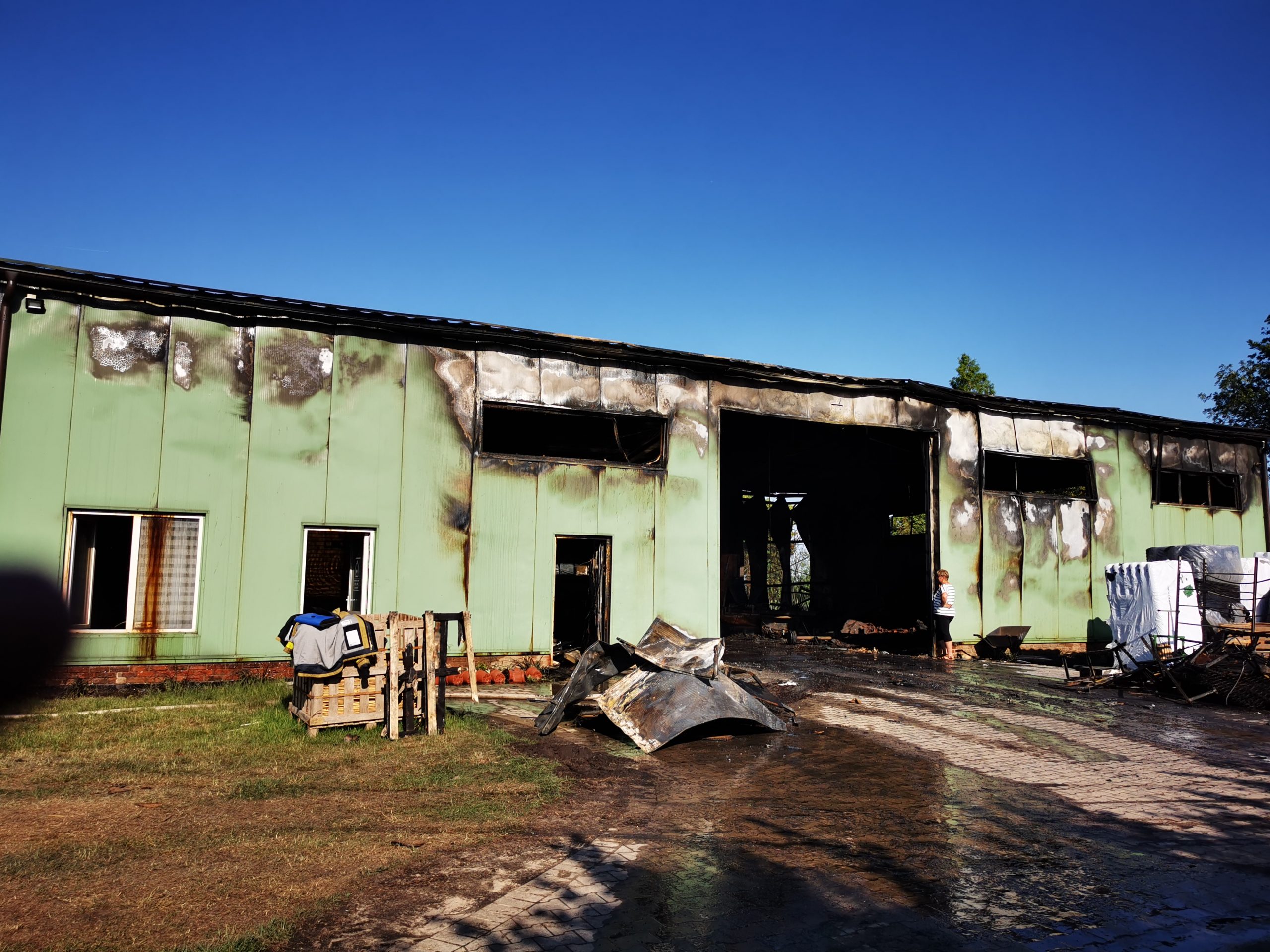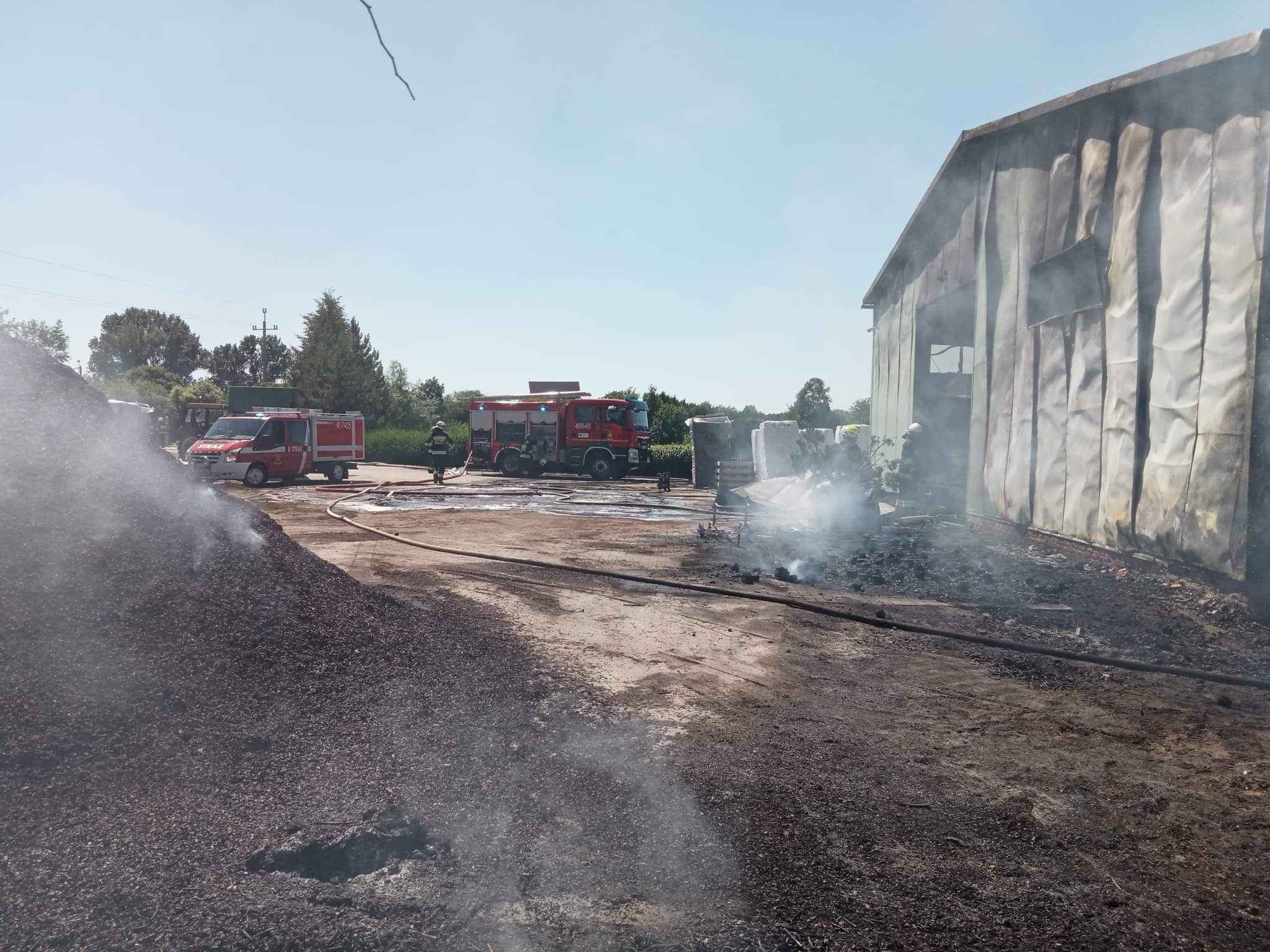W dalszej części działań przeprowadzono ręczne prace rozbiórkowe zdeformowanej konstrukcji metalowej, która utrudniała dostęp do części socjalno – bytowej obiektu, wykorzystując do tego celu mechaniczne piły tarczowe. Po usunięciu materiałów składowanych w pryzmach z wykorzystaniem ciągnika rolniczego z ładowaczem czołowym na zewnątrz i dogaszeniu zarzewi ognia zlokalizowanych za pomocą kamery termowizyjnej działania, które trwały nieprzerwanie przez ponad 5 godzin zakończono.
