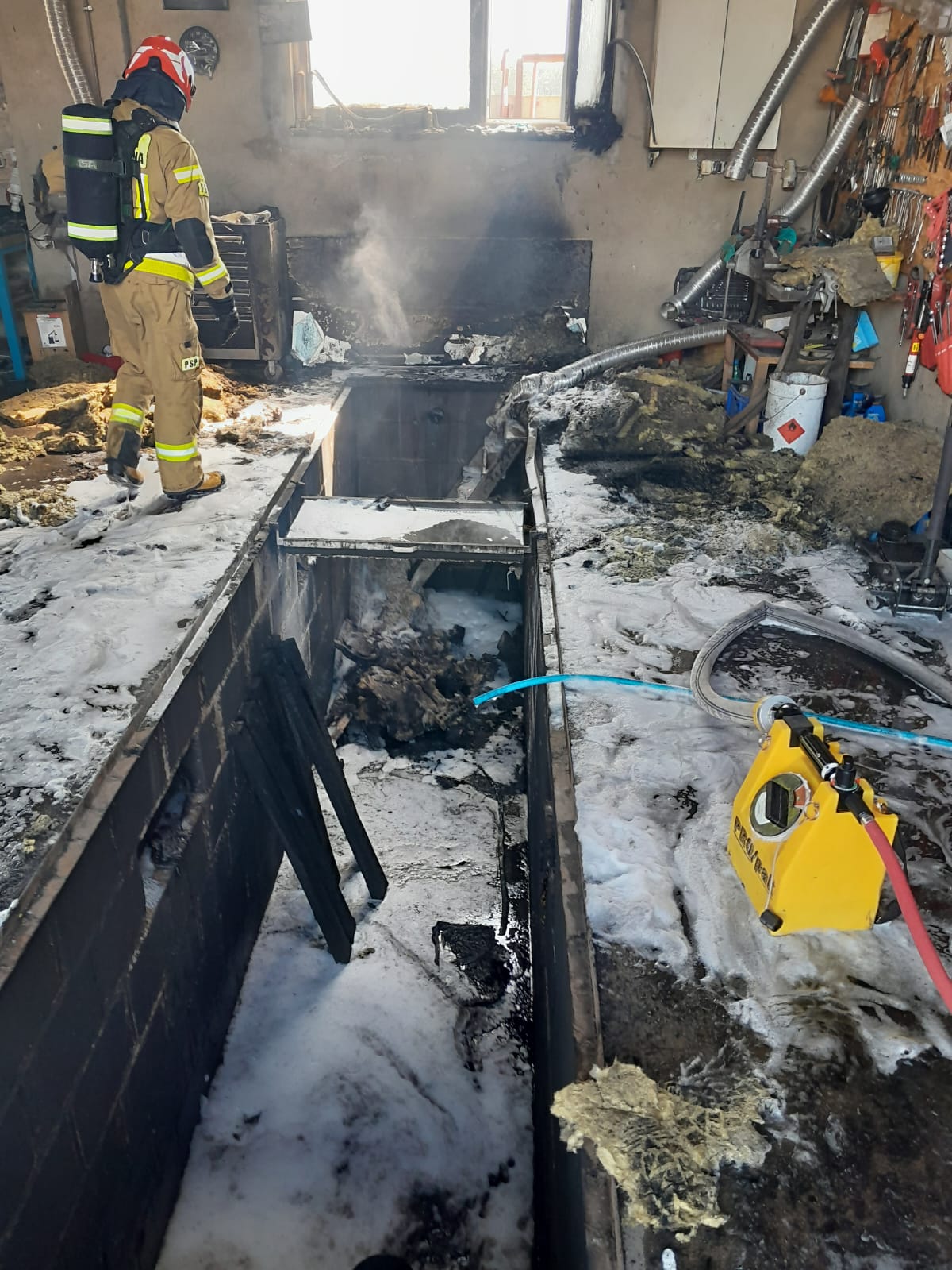 Po dojeździe na miejsce zdarzenia okazało się, że palący się samochód osobowy został wyciągnięty na zewnątrz lecz pożar rozprzestrzenił się na pomieszczenie warsztatu mówi Tomasz Nowaczyk z grodziskiej straży pożarnej