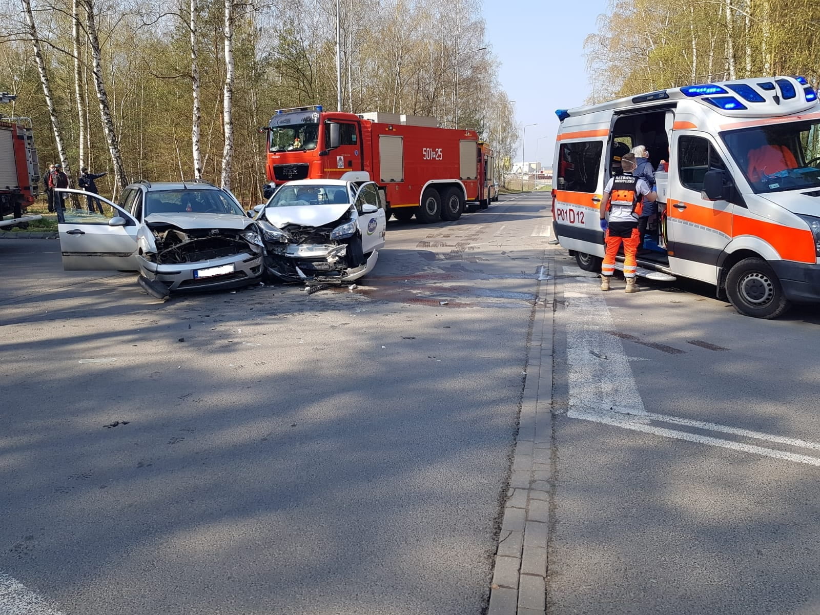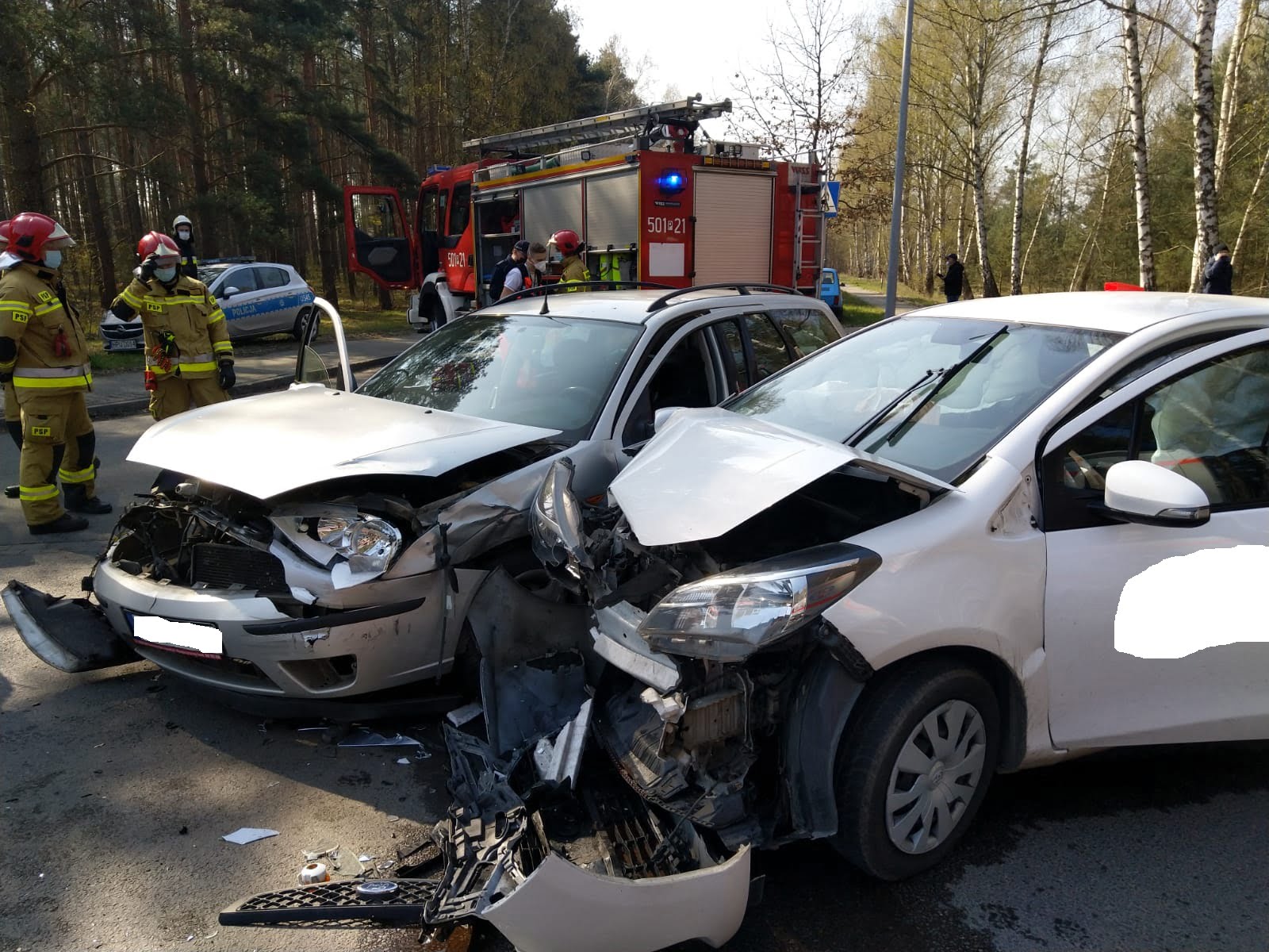 Po dotarciu służb na miejsce zastano dwa roztrzaskane samochody osobowe, którymi łącznie podróżowały trzy osoby. Strażacy zabezpieczyli teren działań i udzielili KPP trzem rannym kobietom. Po przekazaniu poszkodowanych pod opiekę ZRM zdecydowano, że dwie osoby muszą zostać przetransportowane do szpitala.
