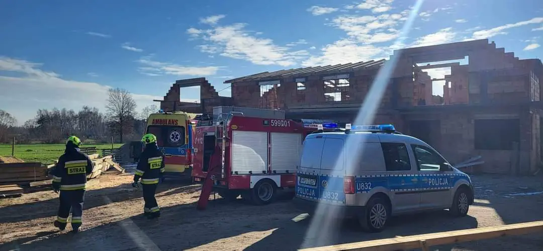 Po dojeździe na miejsce zdarzenia strażacy zastali poszkodowanego mężczyznę po upadku z rusztowania z urazem głowy, który znajdował się na pierwszym piętrz budowanego budynku.
