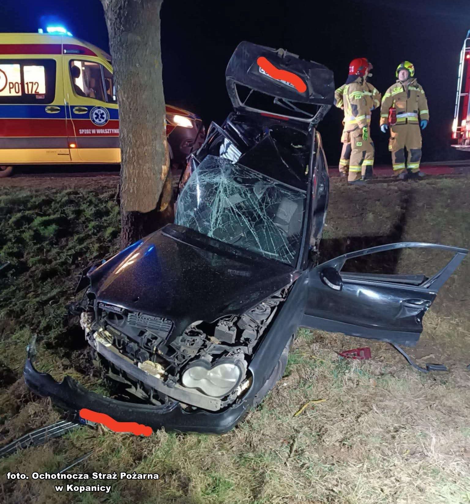 Wszystko wydarzyło się w czwartek 27 lutego o godzinie 23:12. Wówczas to wolsztyńskie służby ratunkowe otrzymały zgłoszenie o wypadku na drodze krajowej numer 32 (91 kilometr, 3 słupek). Według zgłoszenia wynikało, że samochód osobowy marki Mercedes uderzył w drzewo. Mężczyzna był uwięziony w pojeździe przytomny, ale mocno krwawi.