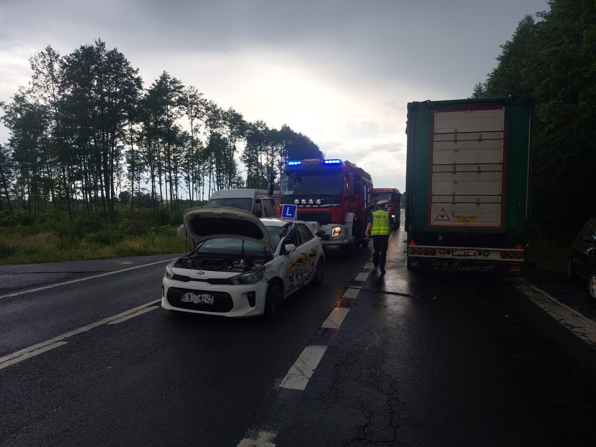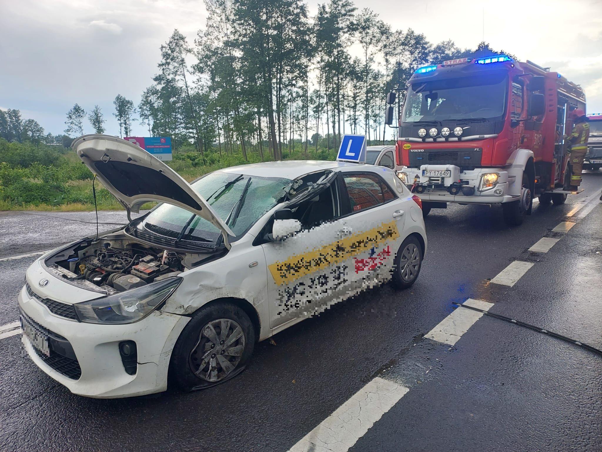 Po przybyciu zastępów na miejsce zdarzenia zastano trzy samochody osobowe oraz jeden samochód ciężarowy. Trzy pojazdy znajdowały się na pasie jezdni natomiast jeden na poboczu drogi. Pojazdami łącznie podróżowało dziewięć osób, w tym dwoje dzieci, które opuściły pojazdy przed przybyciem zastępów straży. Cztery osoby uskarżały się na ból głowy oraz bóle w klatce piersiowej. Pojazd ciężarowy przewoził puste skrzynki. Droga była częściowo zablokowana.
