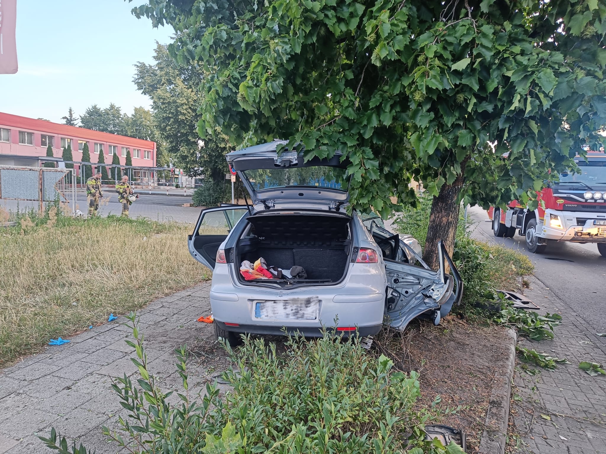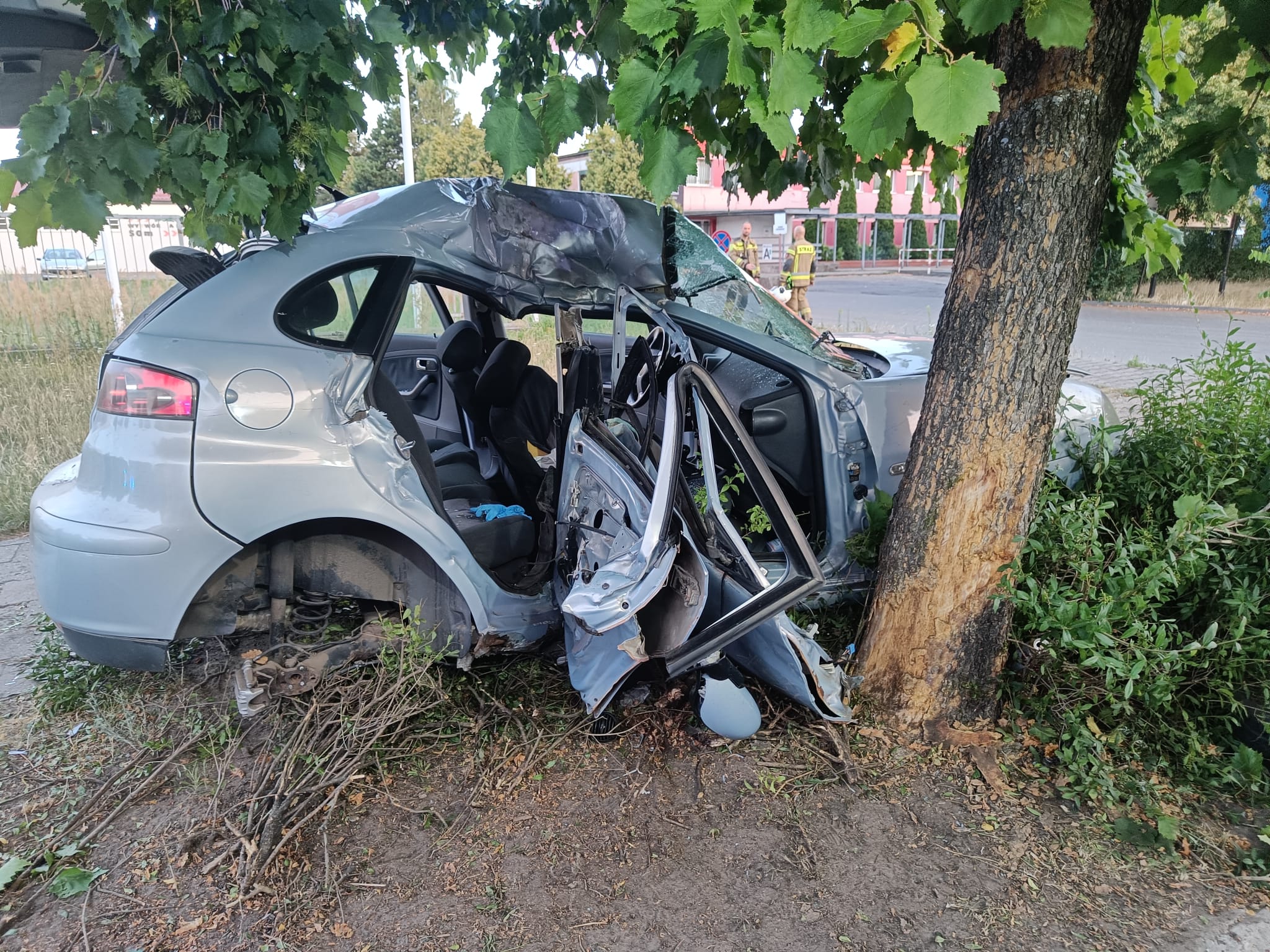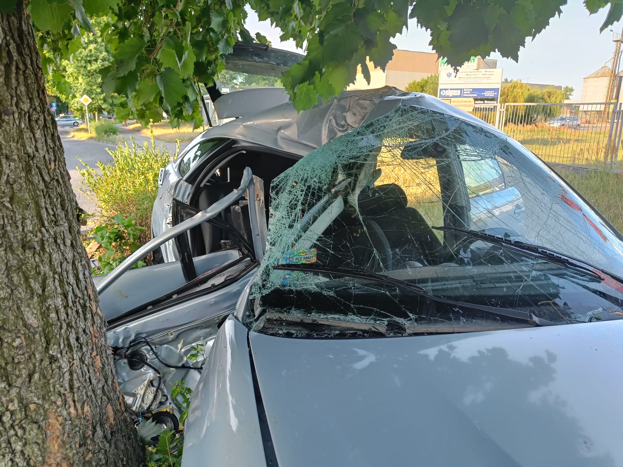 Pięć osób zostało rannych w groźnym wypadku w Lesznie. Seat roztrzaskał się na drzewie.