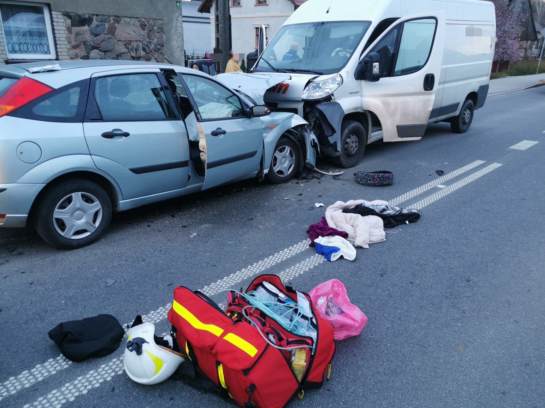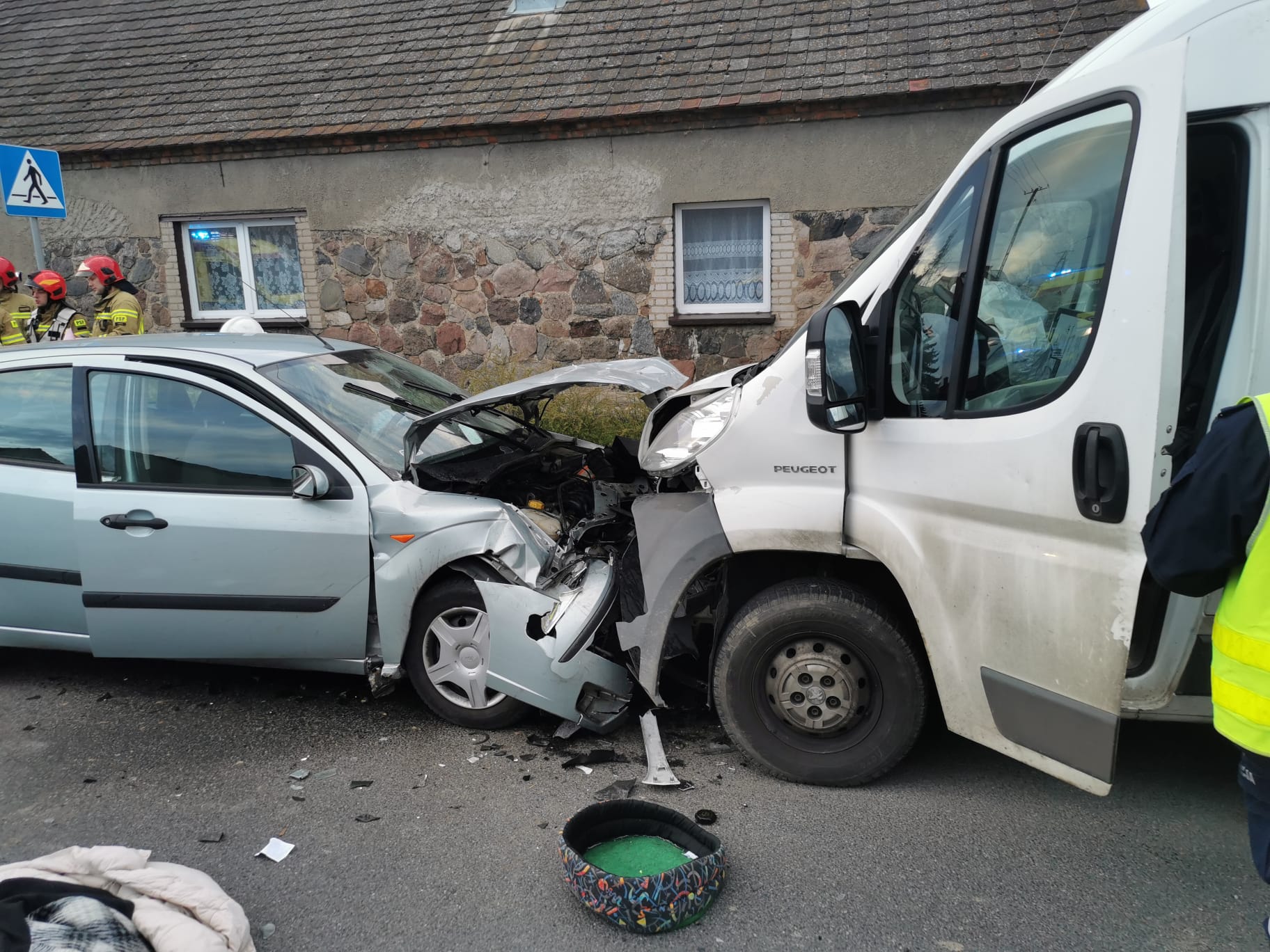 Do groźnie wyglądającego wypadku doszło w środę 12 kwietnia około godziny 18:30 w miejscowości Radomyśl w powiecie leszczyńskim doszło do czołowego zderzenia samochodu osobowego i busa.