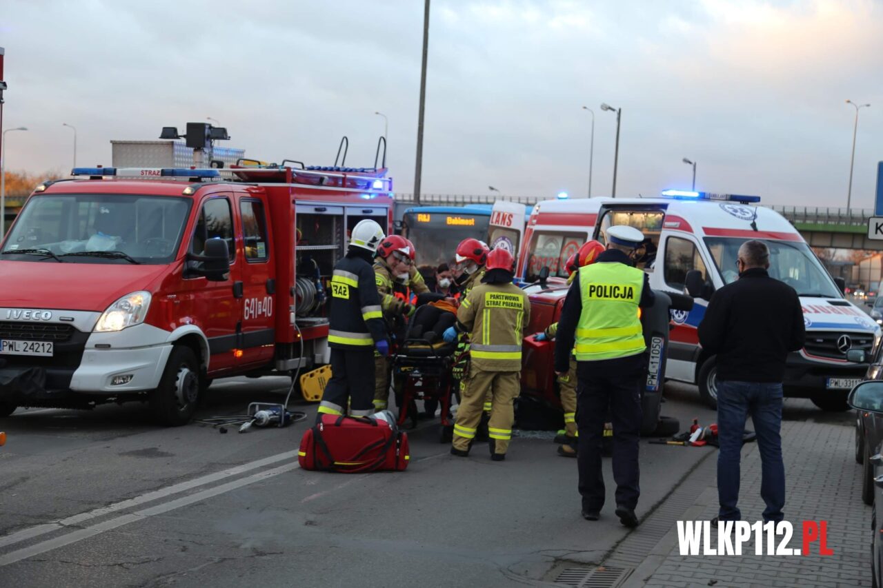 Po dojeździe na miejsce służb ratunkowych okazało się, że doszło do wypadku z udziałem dwóch pojazdów, jeden z nich znajdował się ba boku. Strażacy za pomocą specjalistycznego sprzętu hydraulicznego wykonali dostęp do osoby poszkodowanej, która wydostali przez bagażnik. Do pozostałych czynności strażaków należało zabezpieczenie miejsca zdarzenia, stabilizacja pojazdu oraz udzielenie kwalifikowanej pierwszej pomocy.