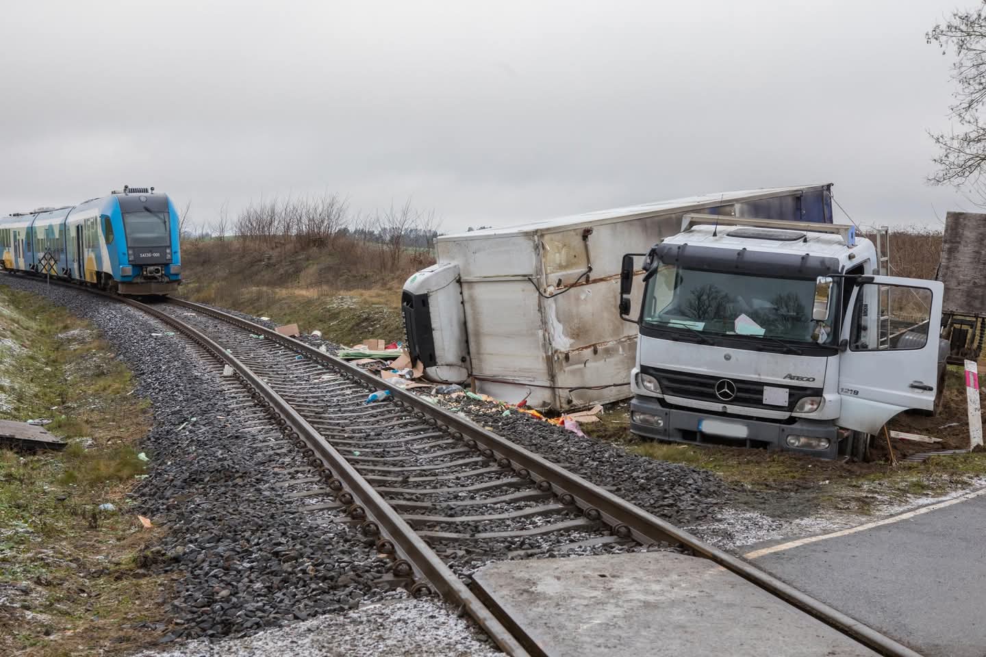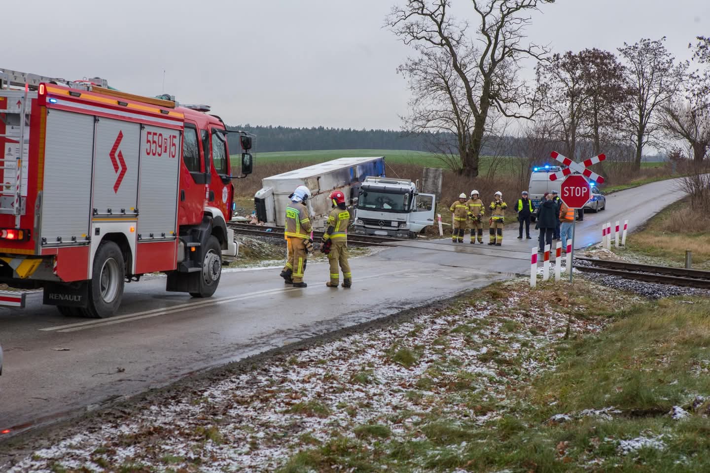 Po przybyciu na miejsce zdarzenia straży pożarnej stwierdzono, że szynobus uderzył w tylną część samochodu ciężarowego, który znajdował się na przejeździe kolejowym.