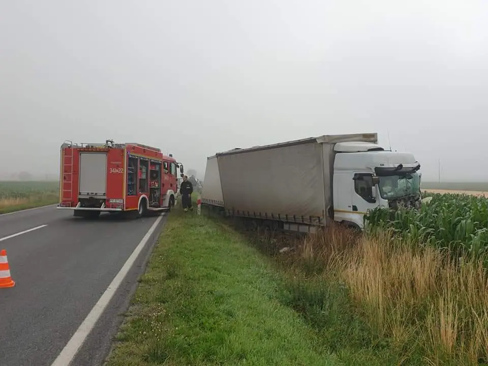 Policjanci ustalili, że 44-letni mężczyzna mieszkaniec powiatu Inowrocławskiego, który podróżował samochodem marki Renault jadąc w kierunku Kalisza, z nieustalonych jak na razie przyczyn zjechał na przeciwległy pas ruchu doprowadzając do zderzenia z jadącym z nad przeciwka drugim pojazdem marki Fiat Ducato, którym podróżował młody mężczyzna. Na tył pojazdu marki Fita najechał jadący za nim samochód dostawczy.